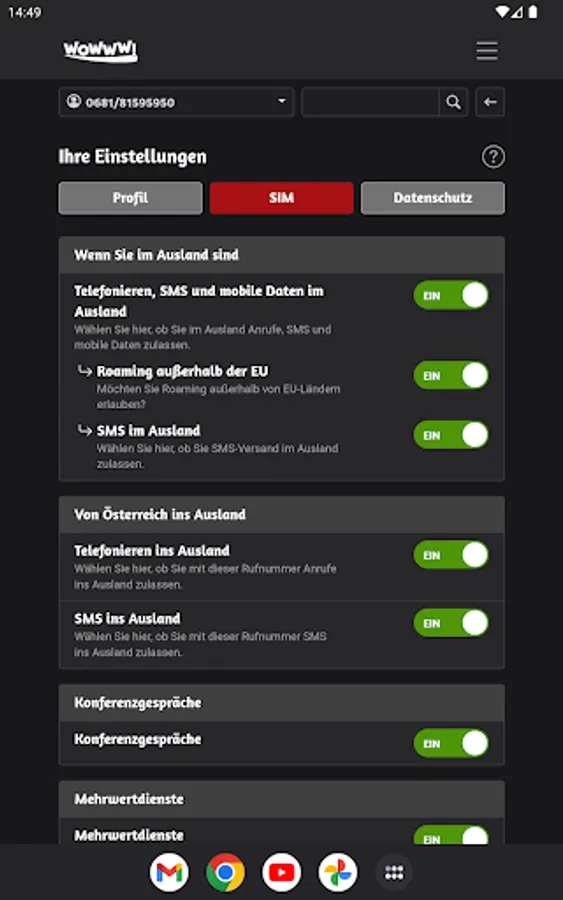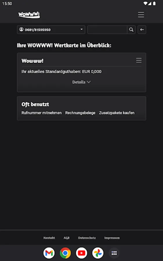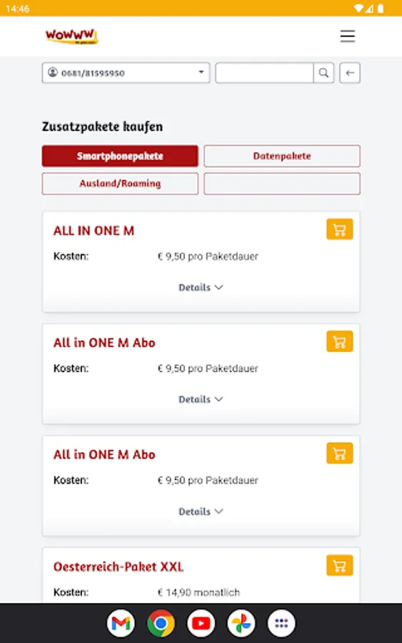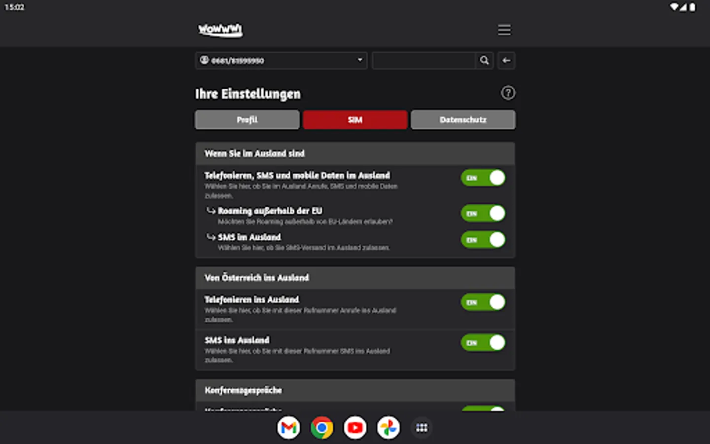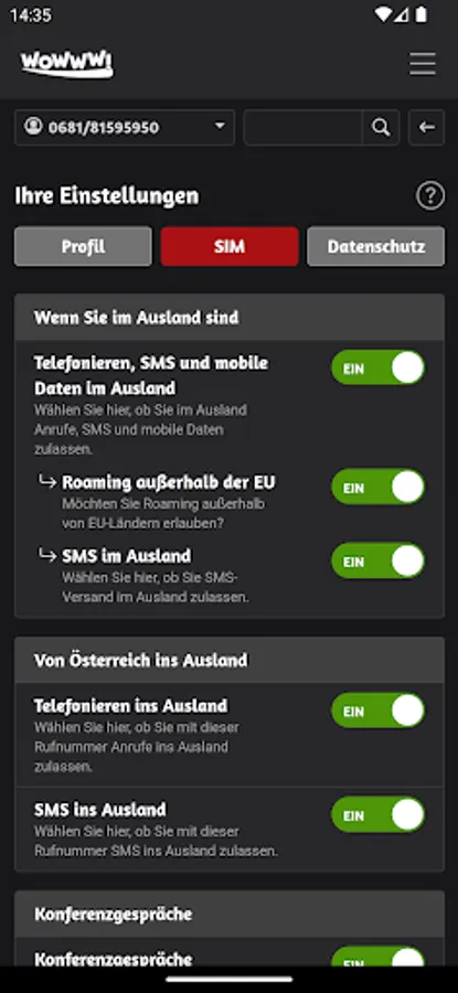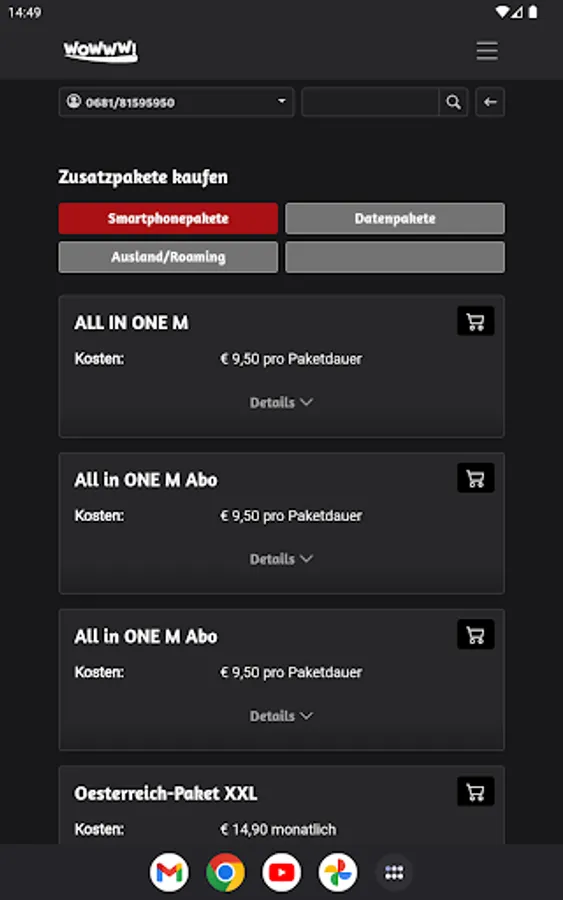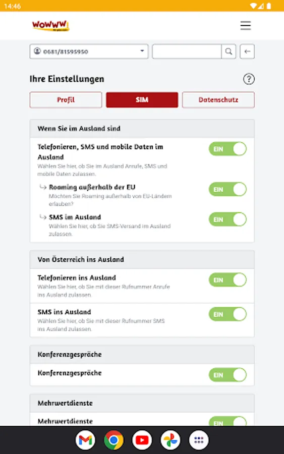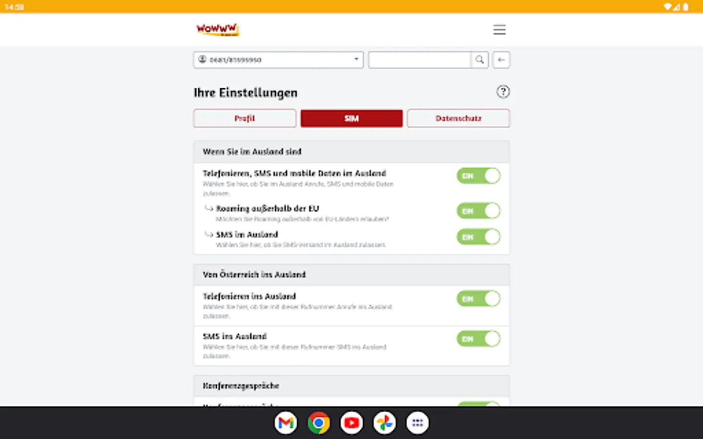 The perfect addition to your WOWWW! SIM card! You can see at a glance the consumption of your included free units, the current cost status and also invoices and itemized bills from the last few months. You will also find information about your contract and can make personal settings. You can optimize your tariff at any time by activating additional packages or upgrading your units.