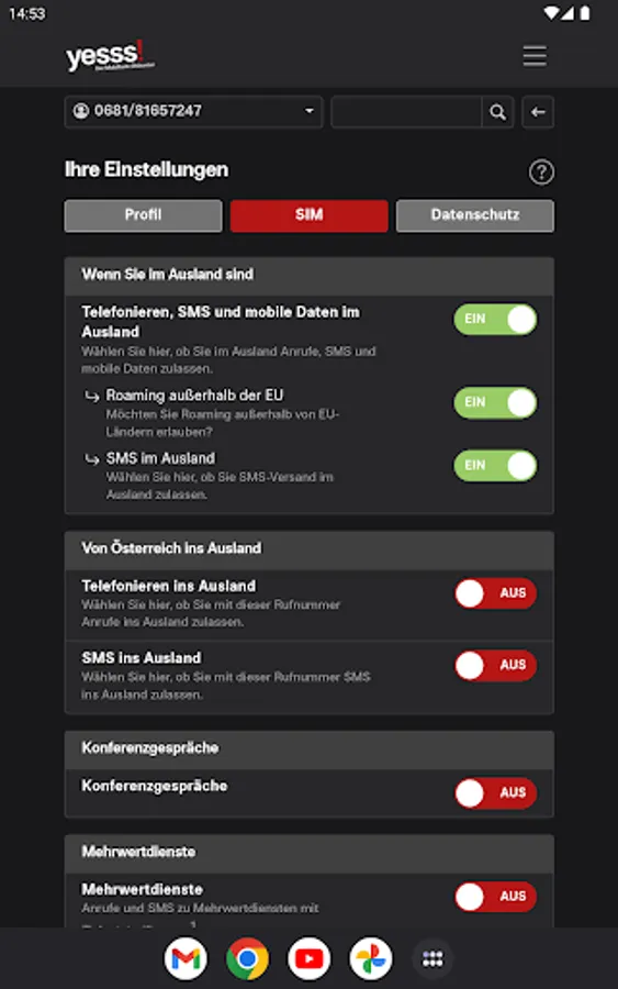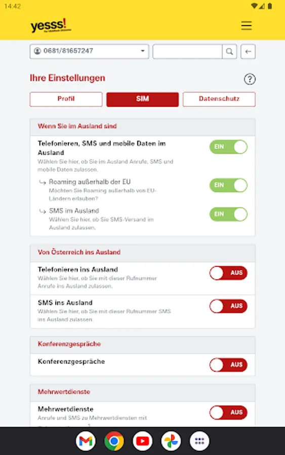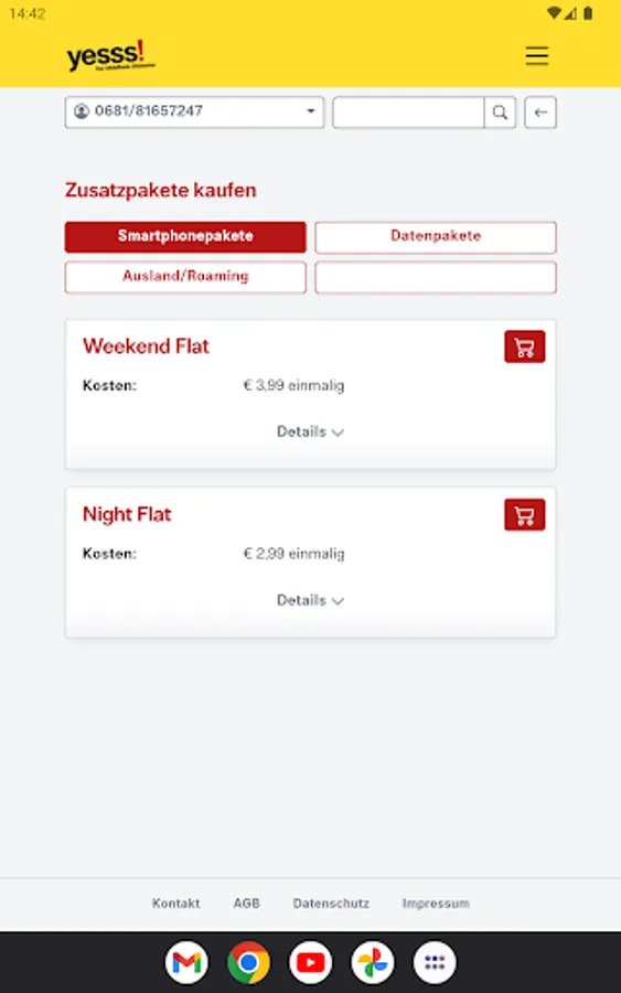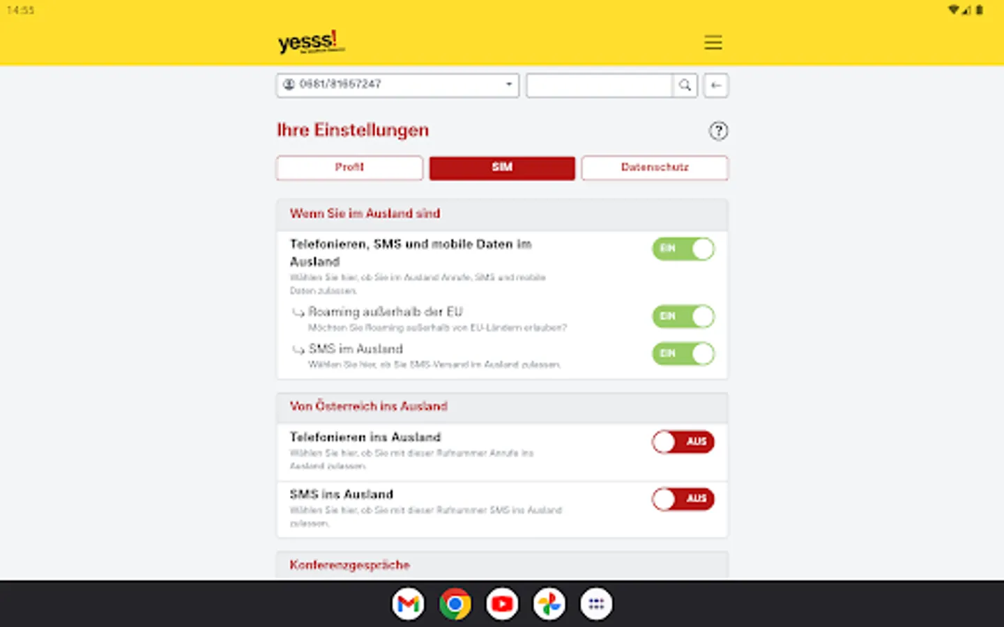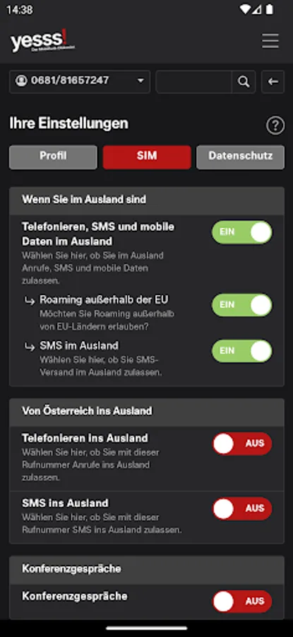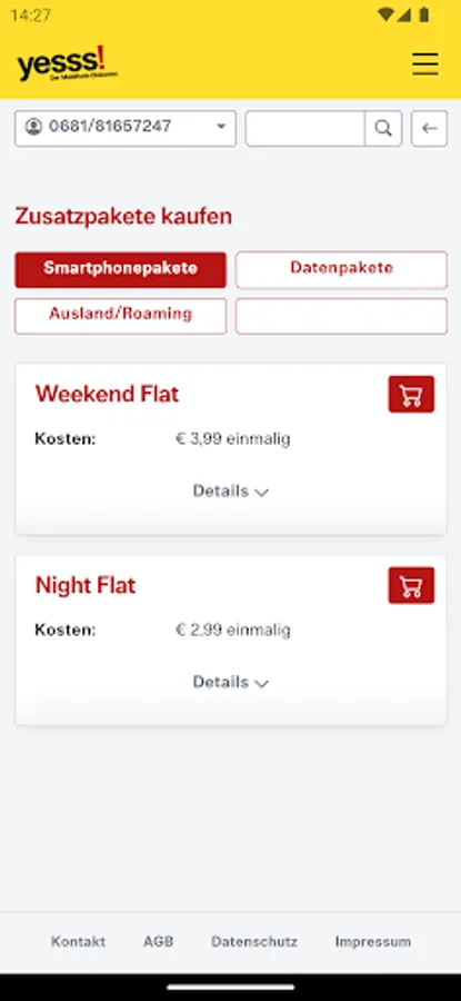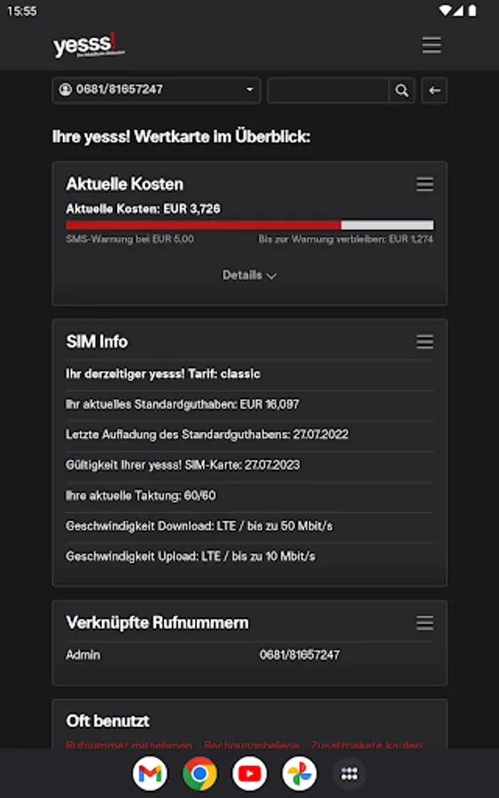 With the yesss! App you have no more stress when surfing and making phone calls! You can see at a glance the consumption of your included free units, the current cost status and also invoices and itemized bills from the last few months. You will also find information about your contract and can make personal settings. You can optimize your tariff at any time by activating additional packages or upgrading your units.