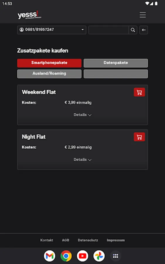 The app is suitable for smartphones and tablets. The account manager can also be reached via the browser www.yesss.at/kontomanager.