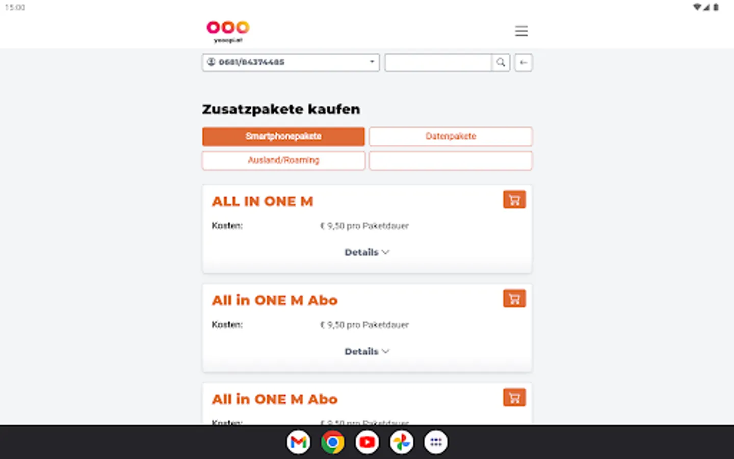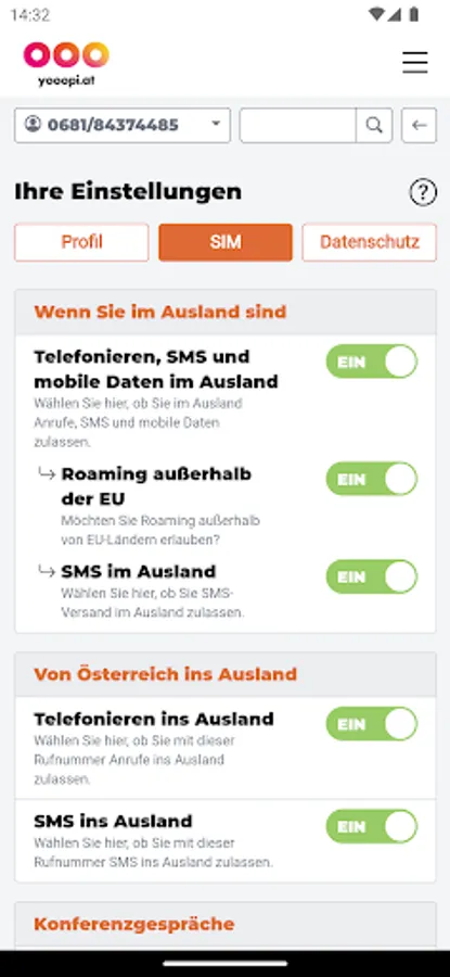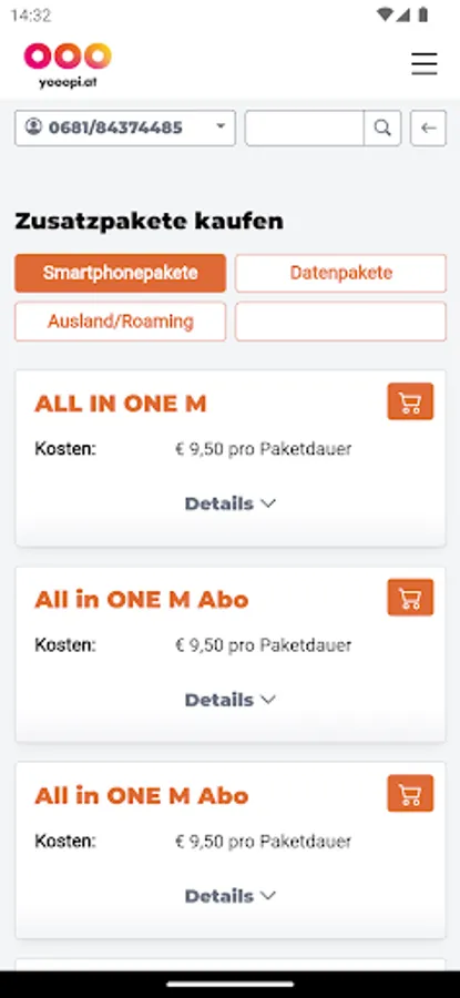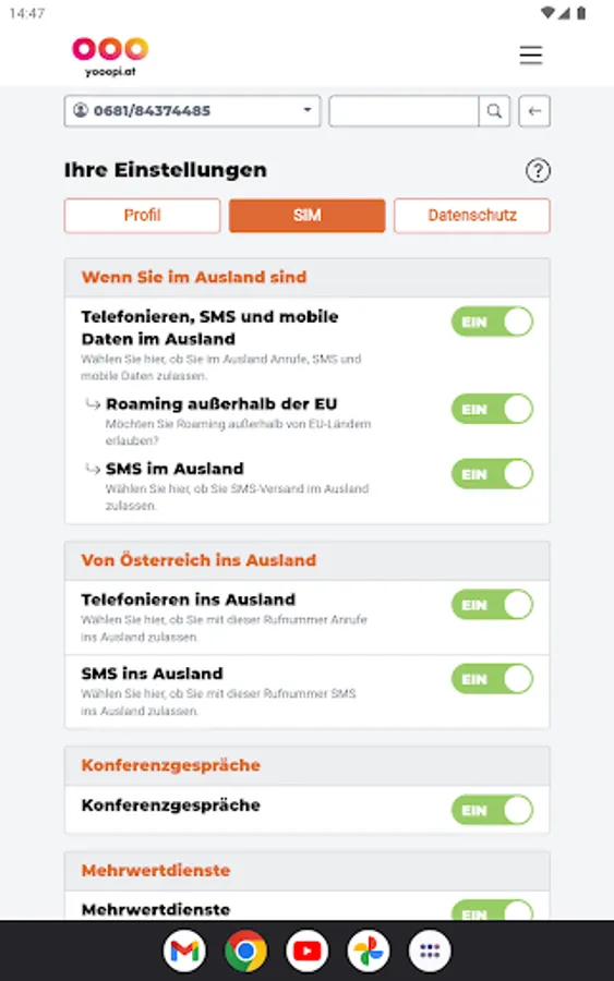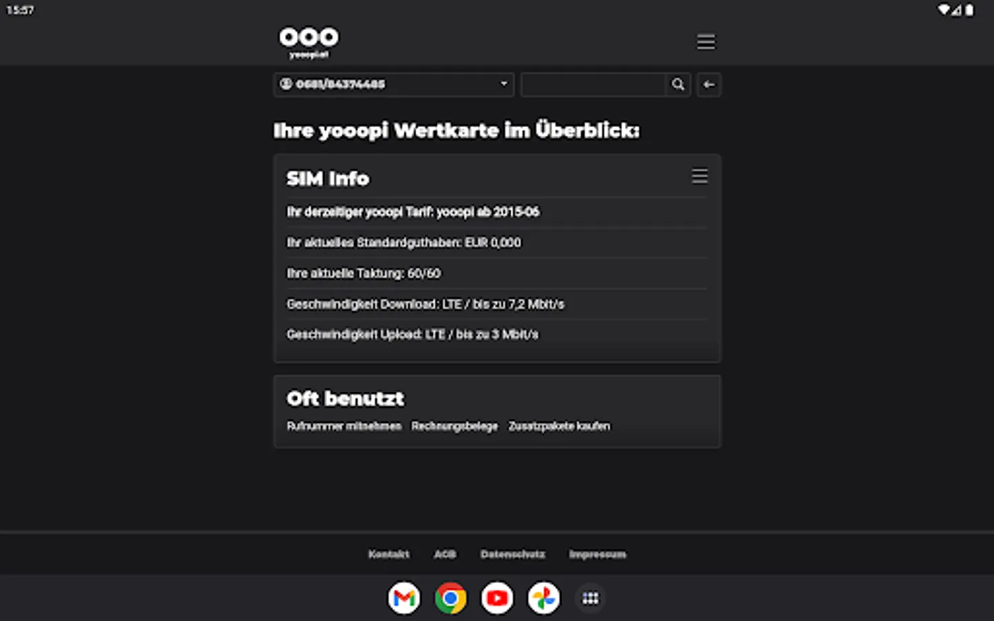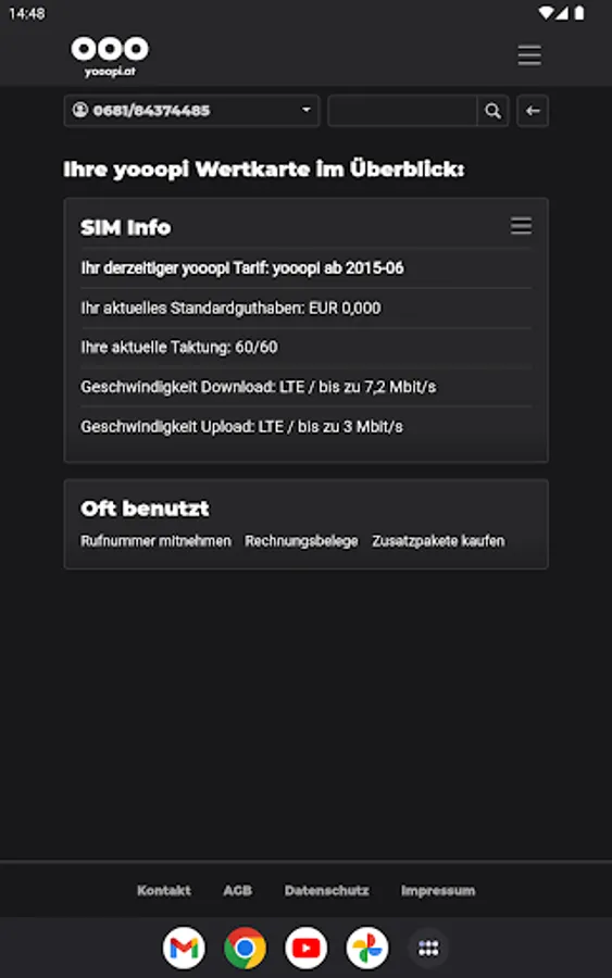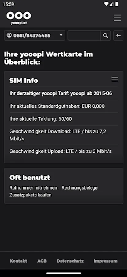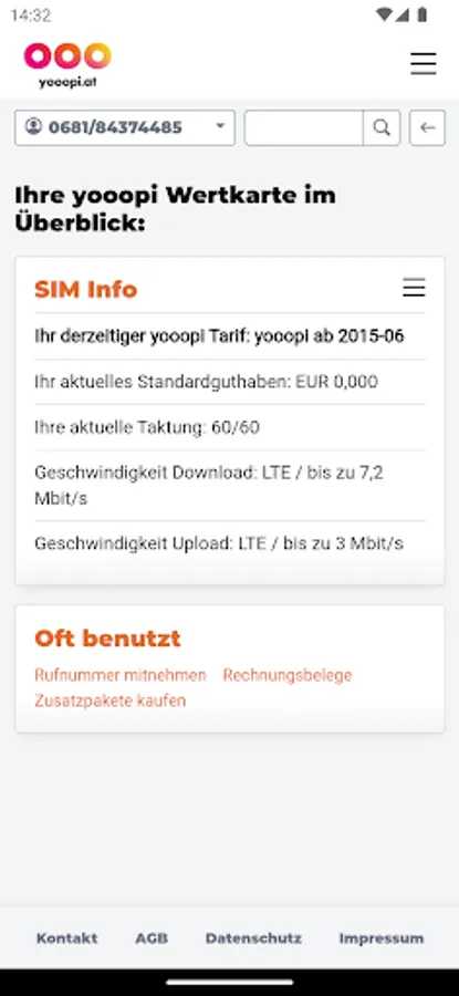 The perfect addition to your yooopi SIM card! You can see at a glance the consumption of your included free units, the current cost status and also invoices and itemized bills from the last few months. You will also find information about your contract and can make personal settings. You can optimize your tariff at any time by activating additional packages or upgrading your units.