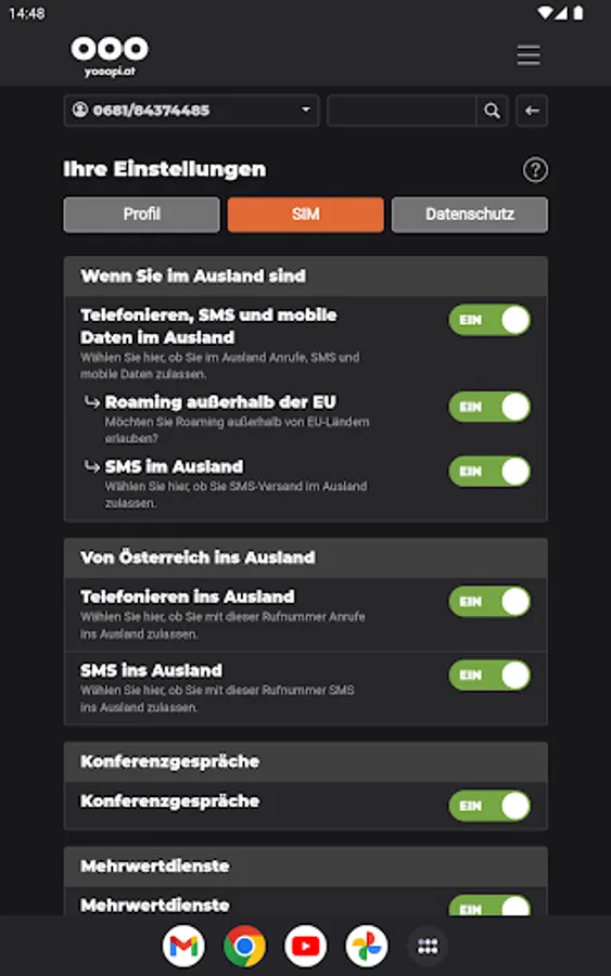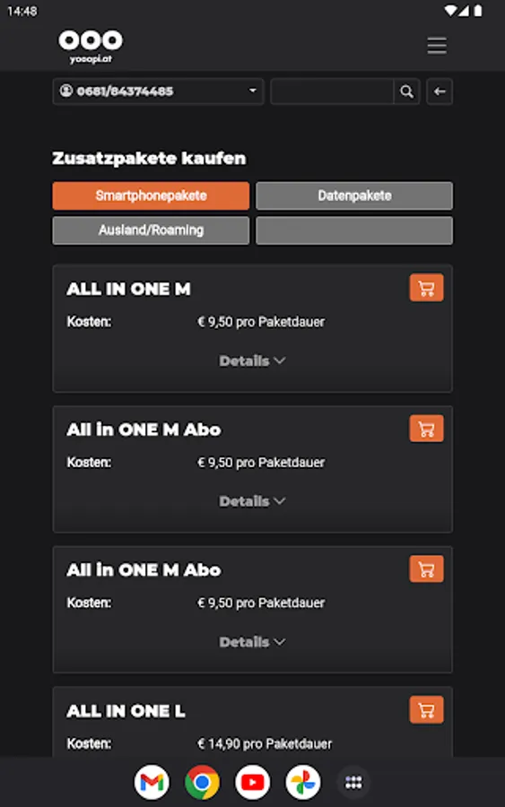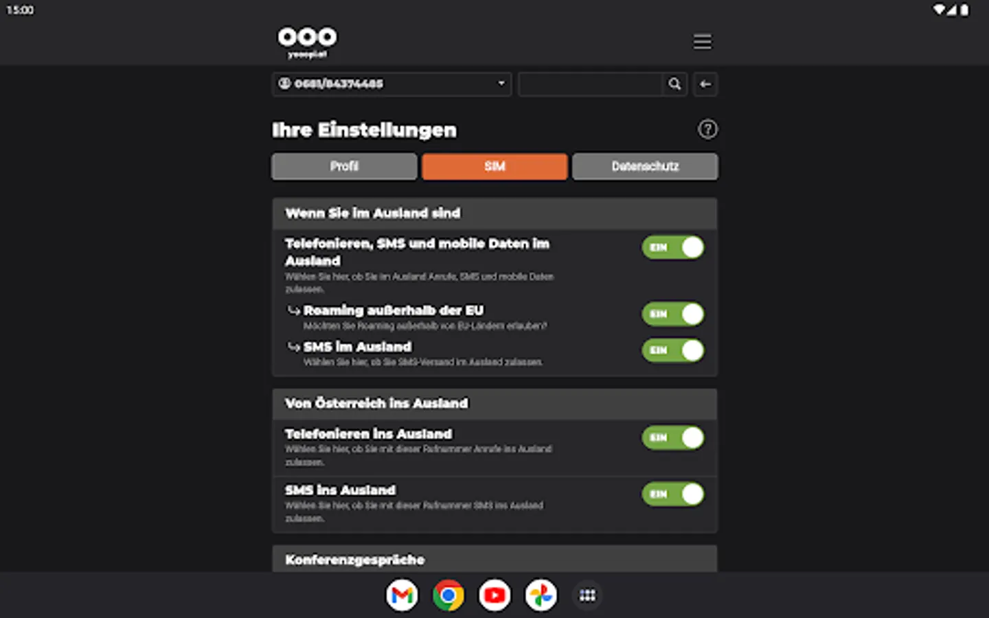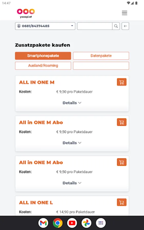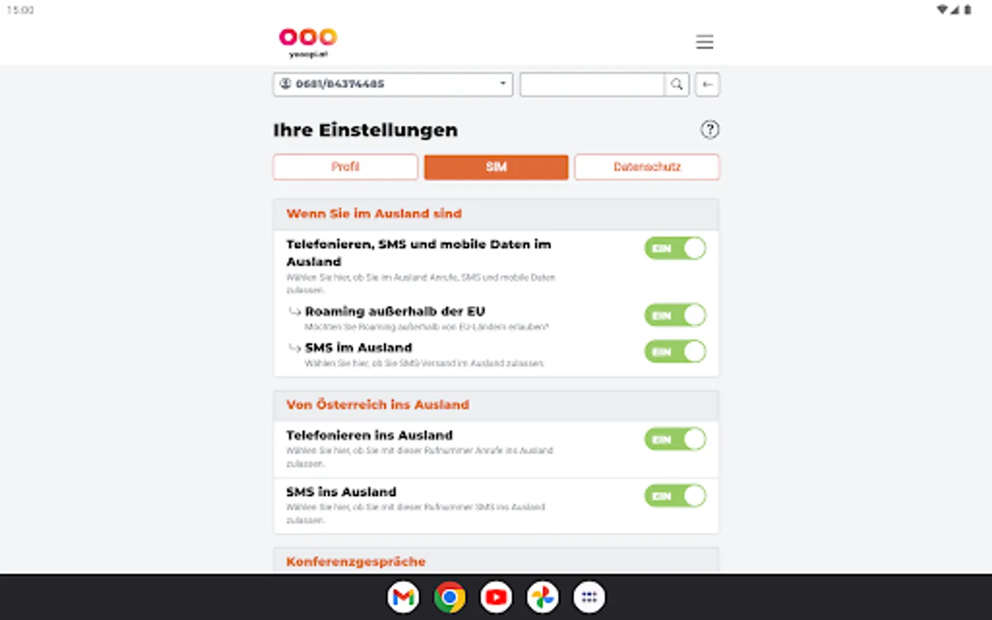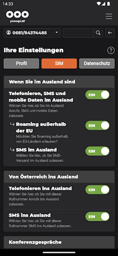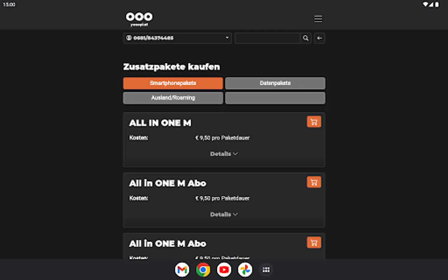 The perfect addition to your yooopi SIM card! You can see at a glance the consumption of your included free units, the current cost status and also invoices and itemized bills from the last few months. You will also find information about your contract and can make personal settings. You can optimize your tariff at any time by activating additional packages or upgrading your units.