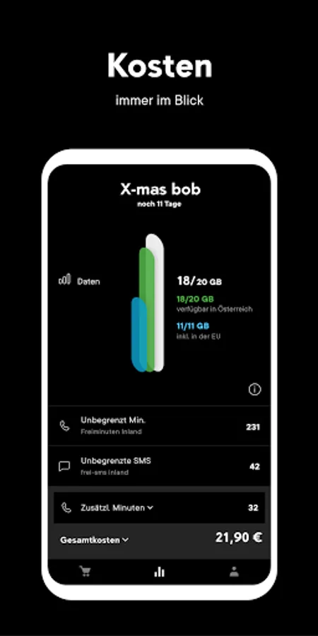 No more nasty surprises at the end of the month. In the mein bob app, you can see on your personal start page how your data is doing.