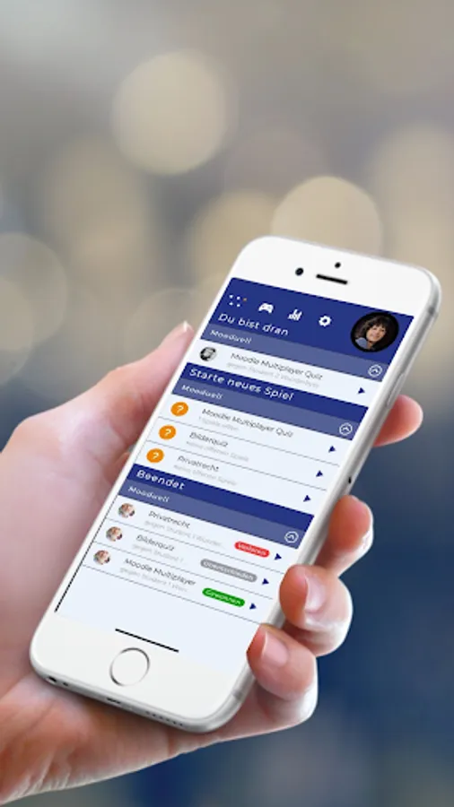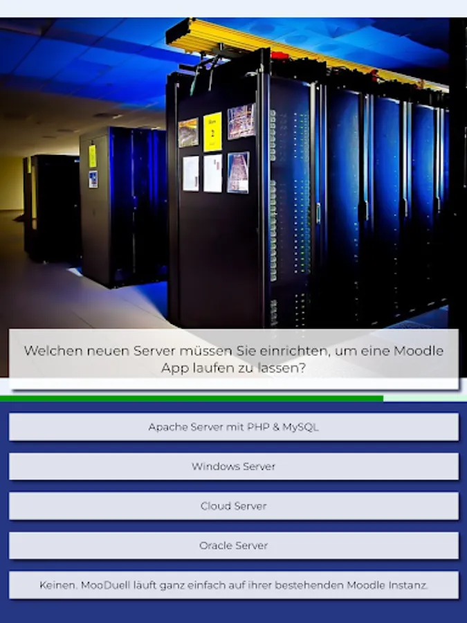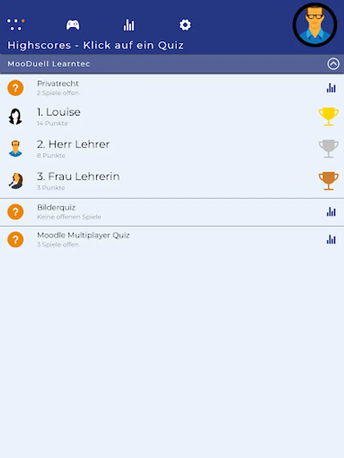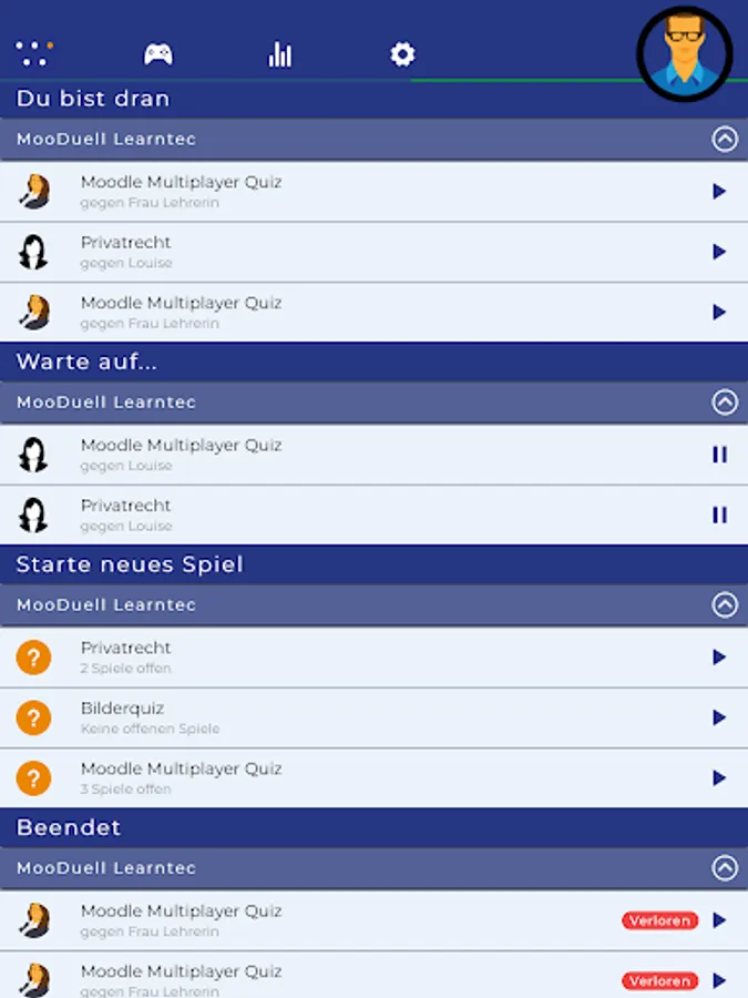 MooDuell is a quiz app that allows you to play the test questions in Moodle courses against your fellow students.