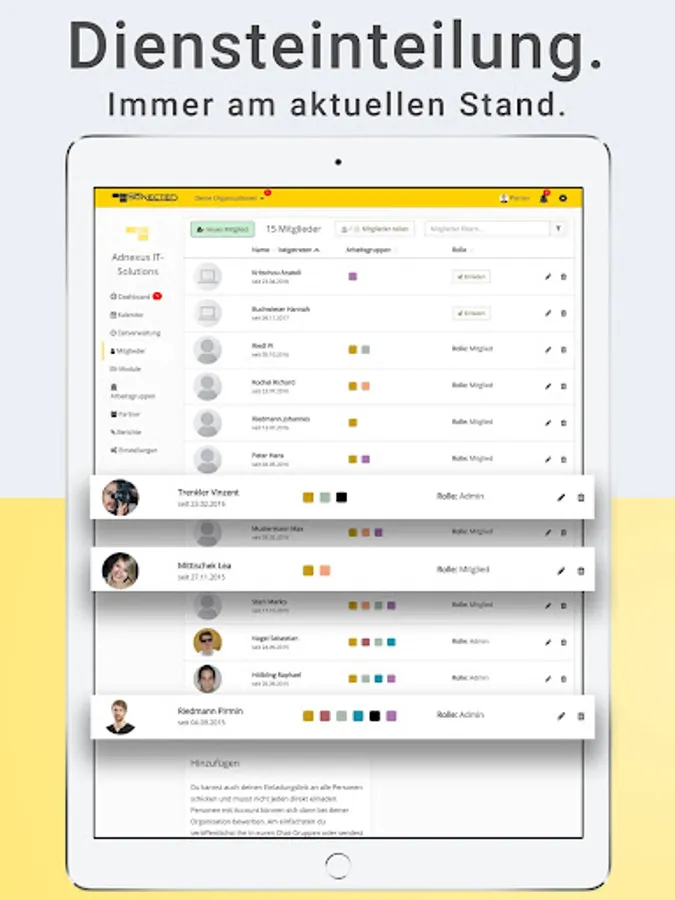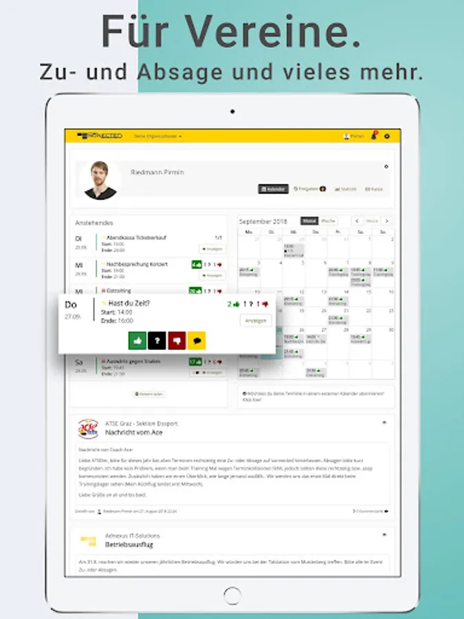 It adapts individually to the needs and works perfectly for any group size - for all companies, clubs and social organizations.