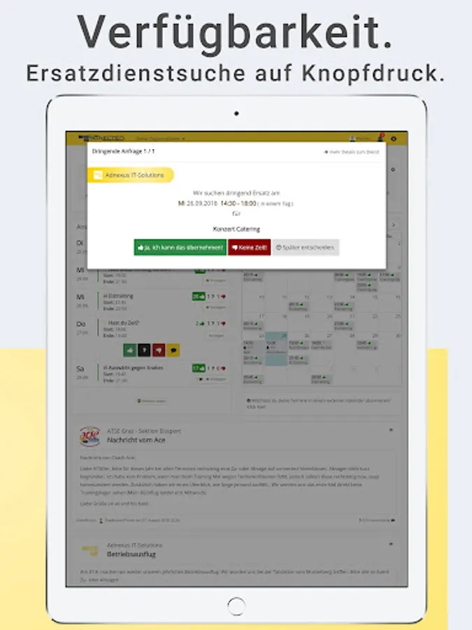 sonected offers quick, easy and flexible solutions for organizing people and time - whether event planning, duty rostering, rehearsals, matches or training.