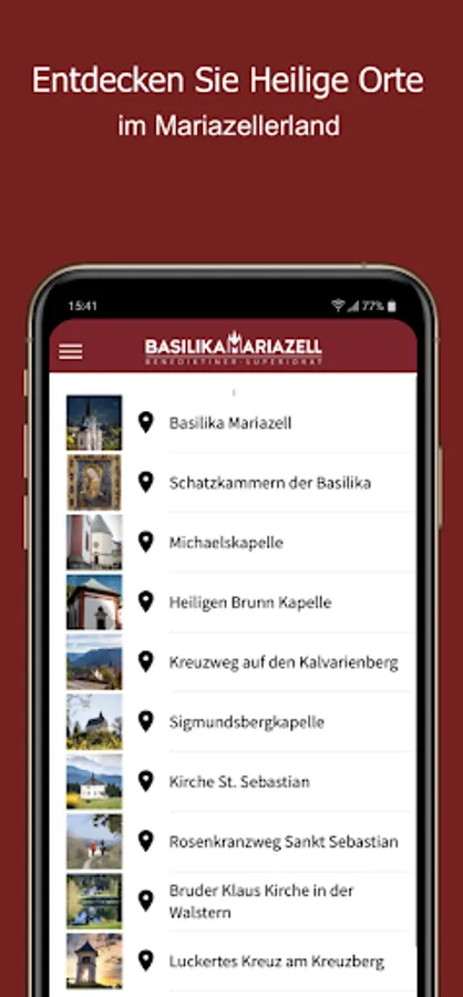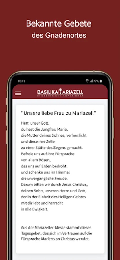 In the app you will find typical and general prayers for the place, information about the current times of worship, descriptions and GPS data of picturesque, holy places in Mariazellerland as well as the audio guide for the treasure chambers of the basilica.