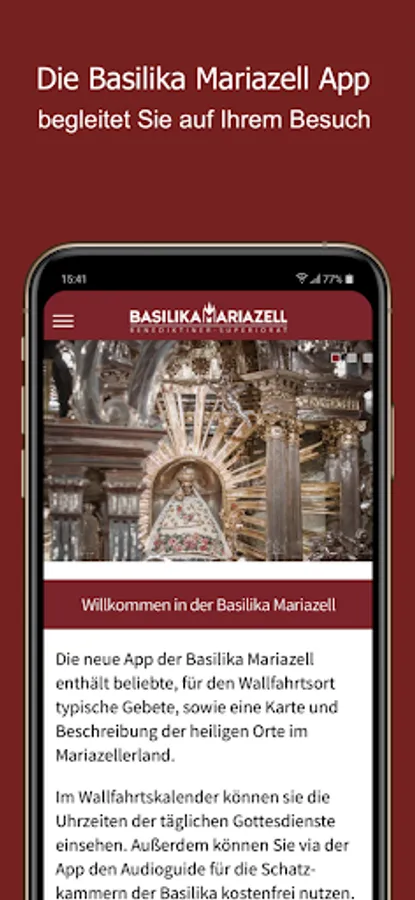 The app of the Mariazeller Basilica accompanies you on your visit through the place of grace.