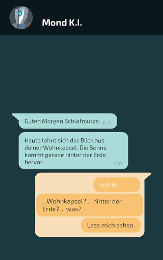 You live and work on the moon. One day you get a message from your aunt that your cousin Mia has disappeared. They are terribly worried and ask for your help. From the moon !? No problem with the new technology, with your moon AI you travel virtually to Mia's apartment as Major Moon and start looking for clues. Protecting Mia's privacy isn't that important to you - after all, you want to find it.