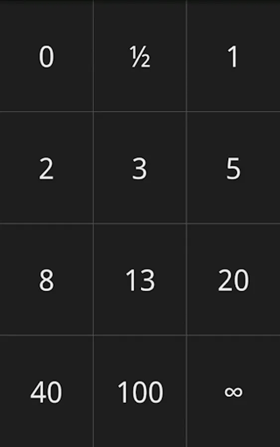Usage is simple: choose the value you want by tapping it. Next a screen appears on which your chosen value is shown. To avoid team-mates recognizing your decision by accident, you can tap the screen so the value disappears and only shows up once you tap the screen again. When it comes to the final showdown, simply present your decision to your team.