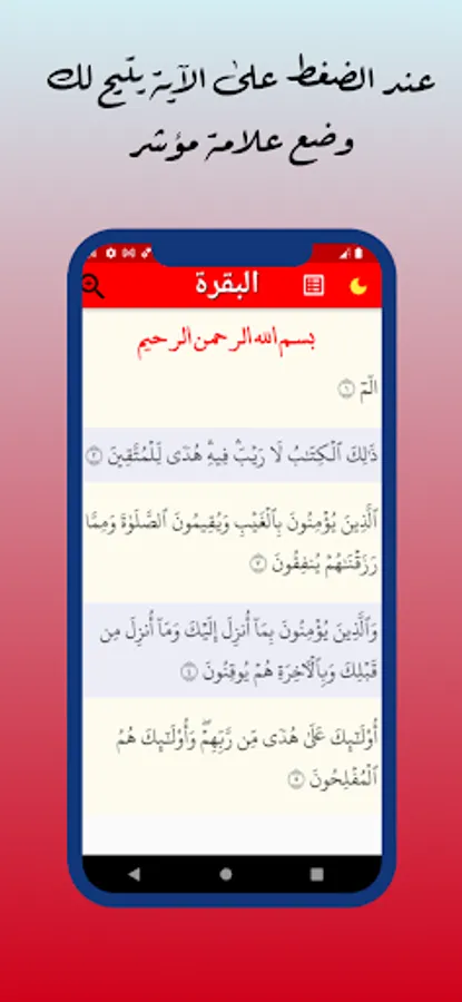 You can read the Qur'an easily and with many features, including easy browsing for a surah, placing an indicator sign for the verse, not for a # that can facilitate reading, using the night mode, and controlling the font in terms of size and width