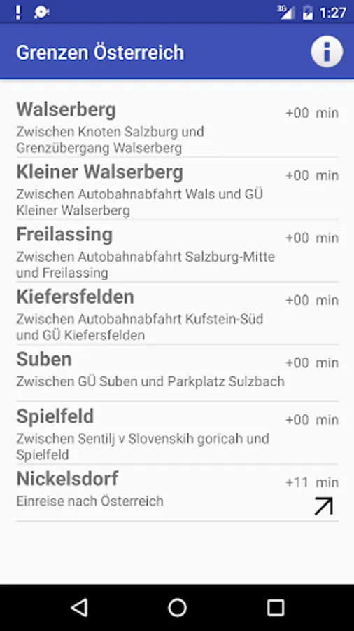 This simple app allows you to display the current waiting times at border crossings currently controlled by Austria: