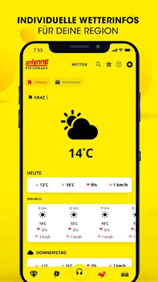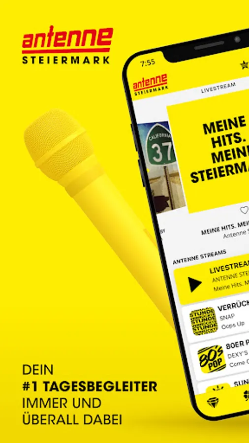 The yellow world of Antenne Styria - no matter when & where! With the app, you have the diverse Antenne program of music, entertainment and regional service as well as the Antenne Steiermark club benefits world with you anytime, anywhere on your smartphone or tablet!