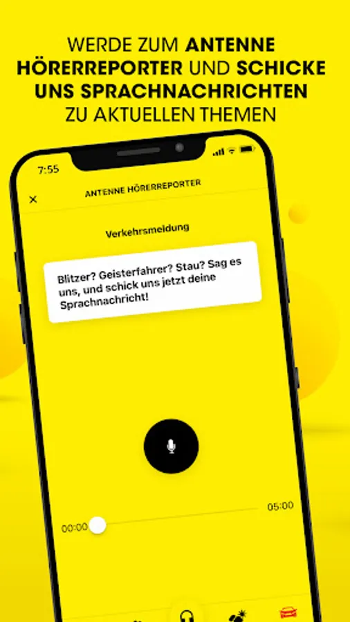 • Antenna listener reporter function: your opinion matters! Send us your opinion on current topics as well as traffic and weather reports easily and directly via voice message!
