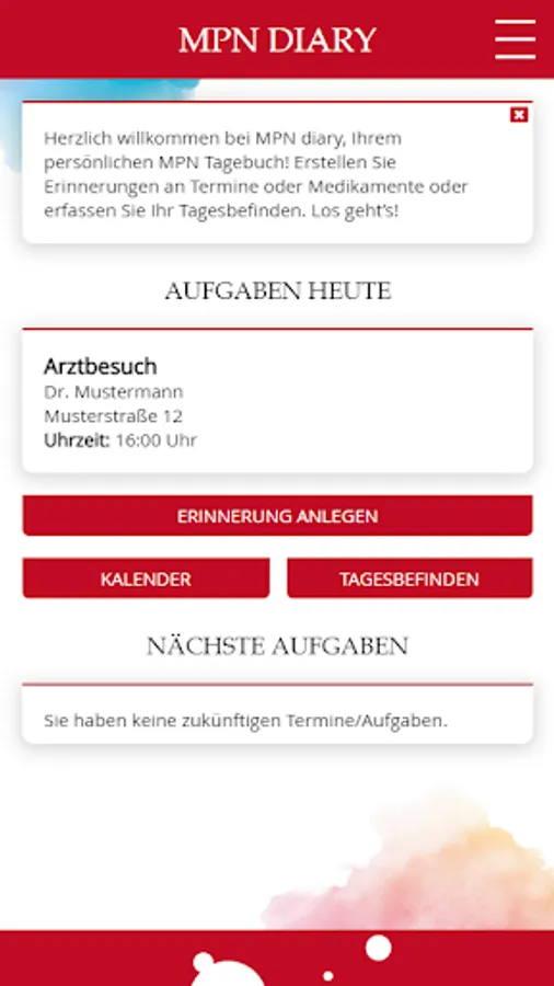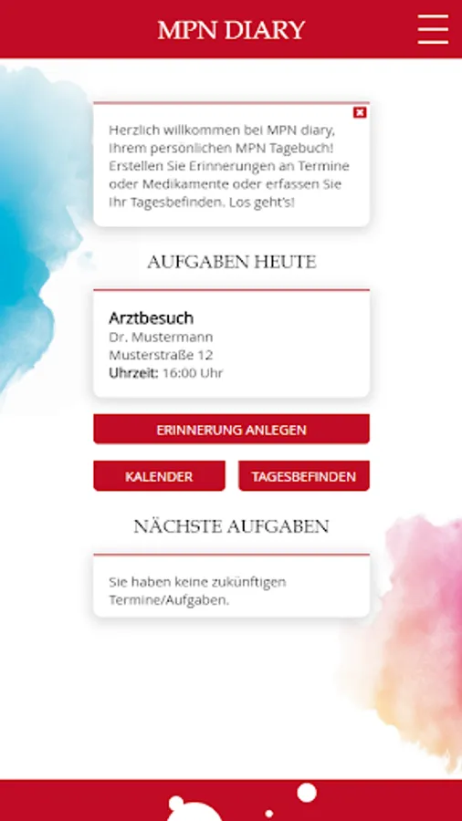 My MPN Diary is a diary and companion tool for patients with myeloproliferative neoplasms (MPNs). Documenting and tracking your MPN disease gives you new detailed insights into your condition. Because you have a better understanding yourself, you will in turn benefit from discussions with your treating doctor, who can go into more detail about what you have experienced, your feelings and your individual situation.