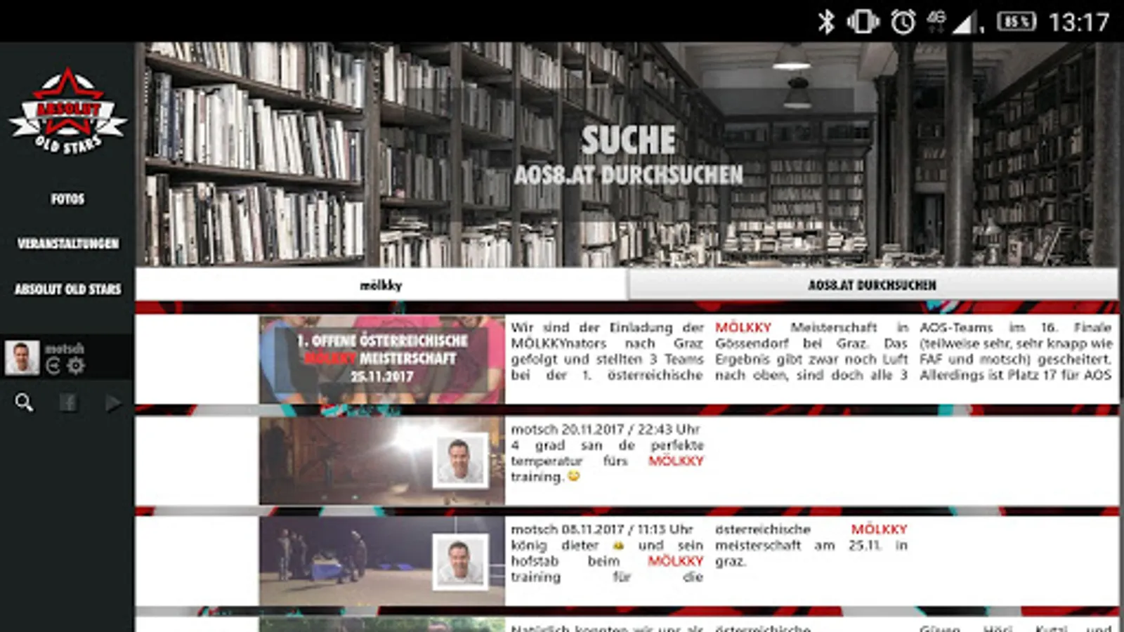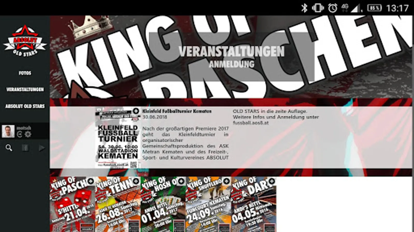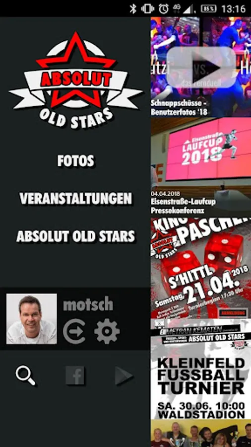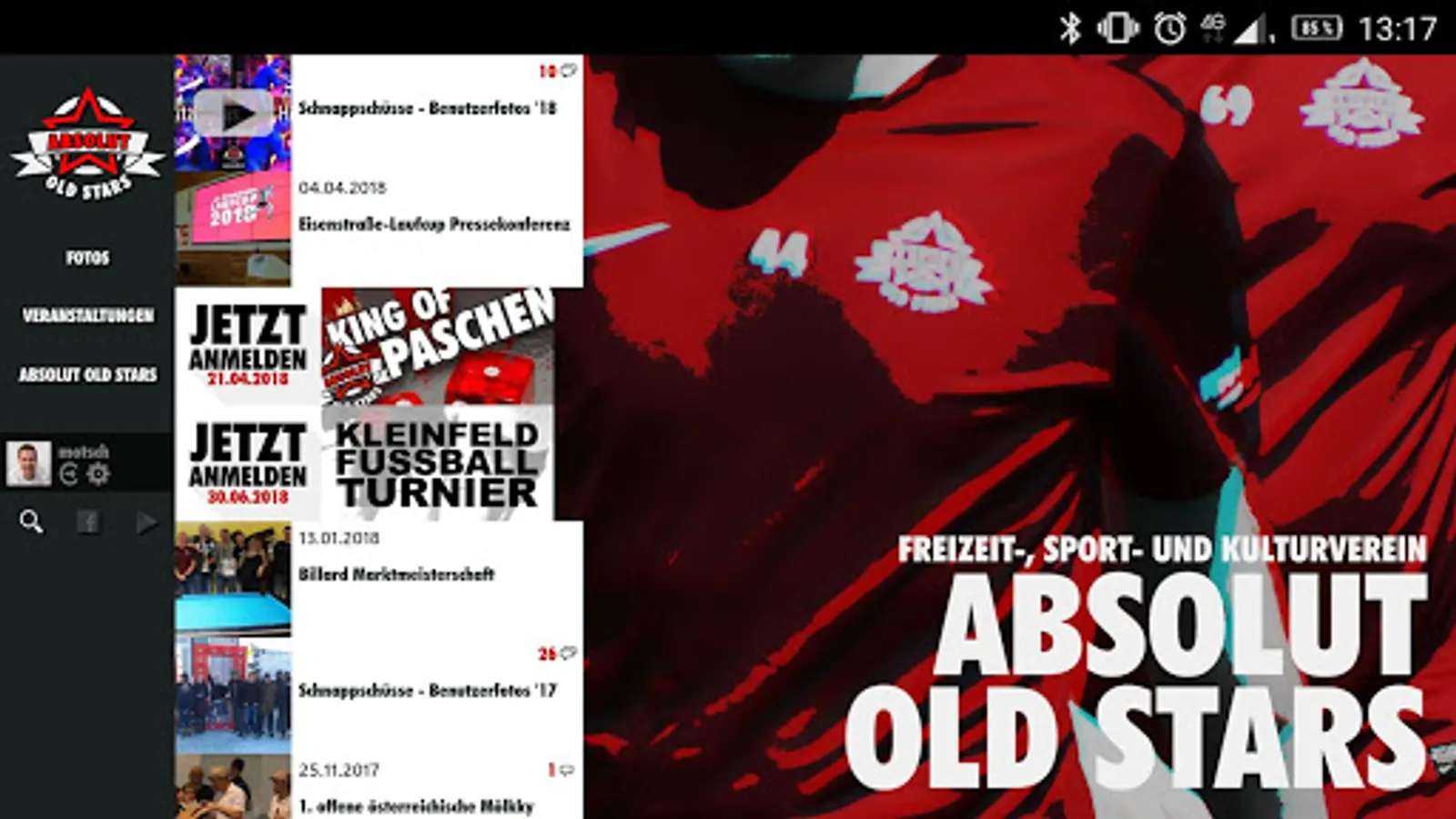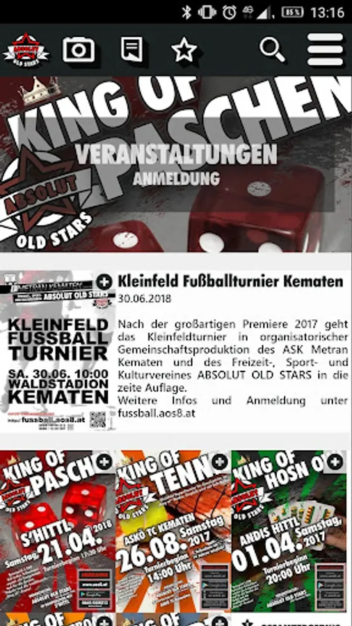 The Android app, from recreational, sports and cultural club ABSOLUT OLD STARS.