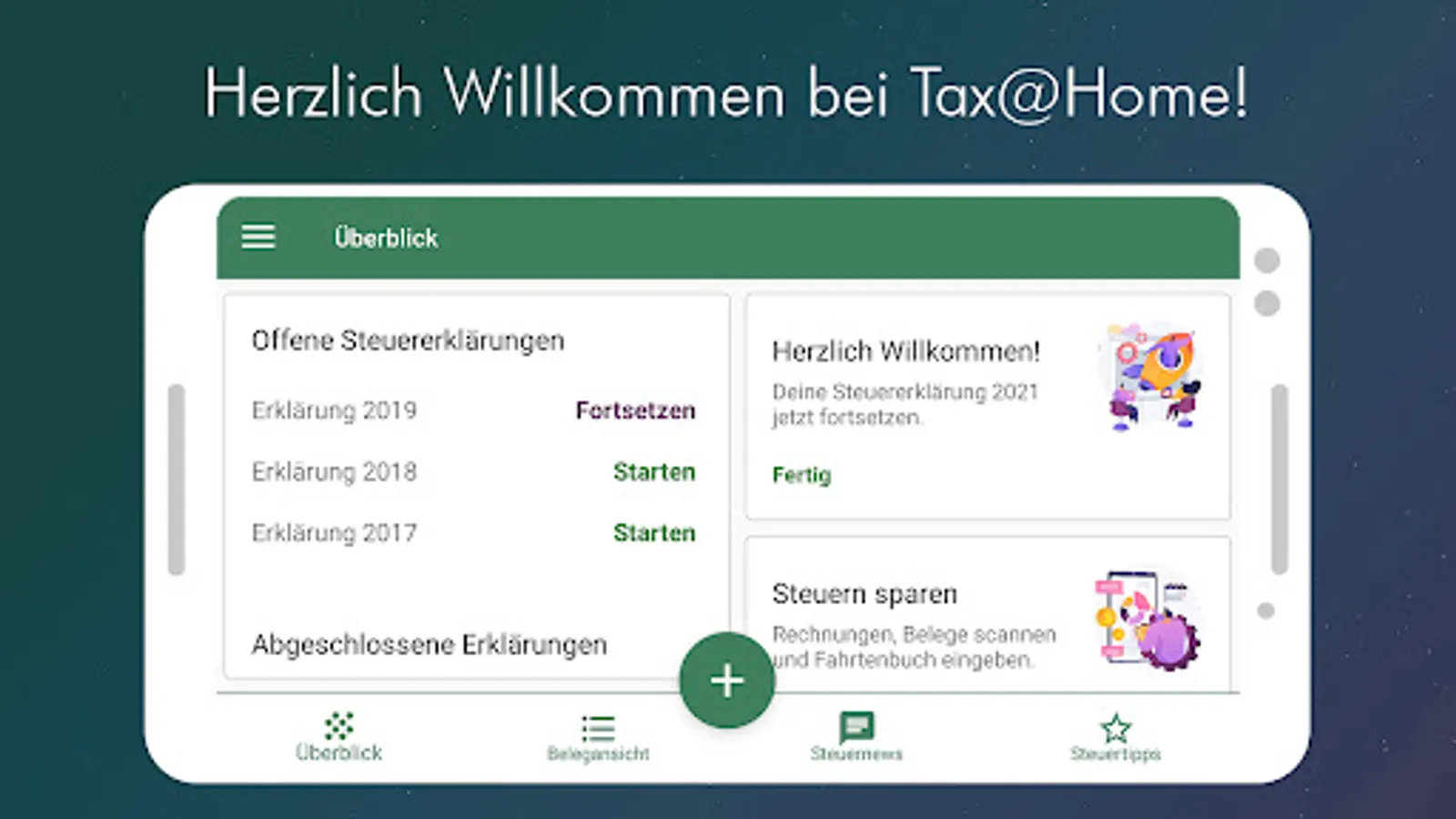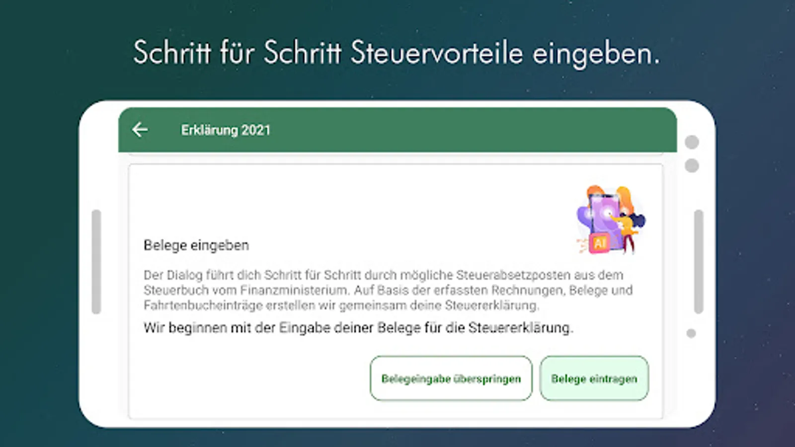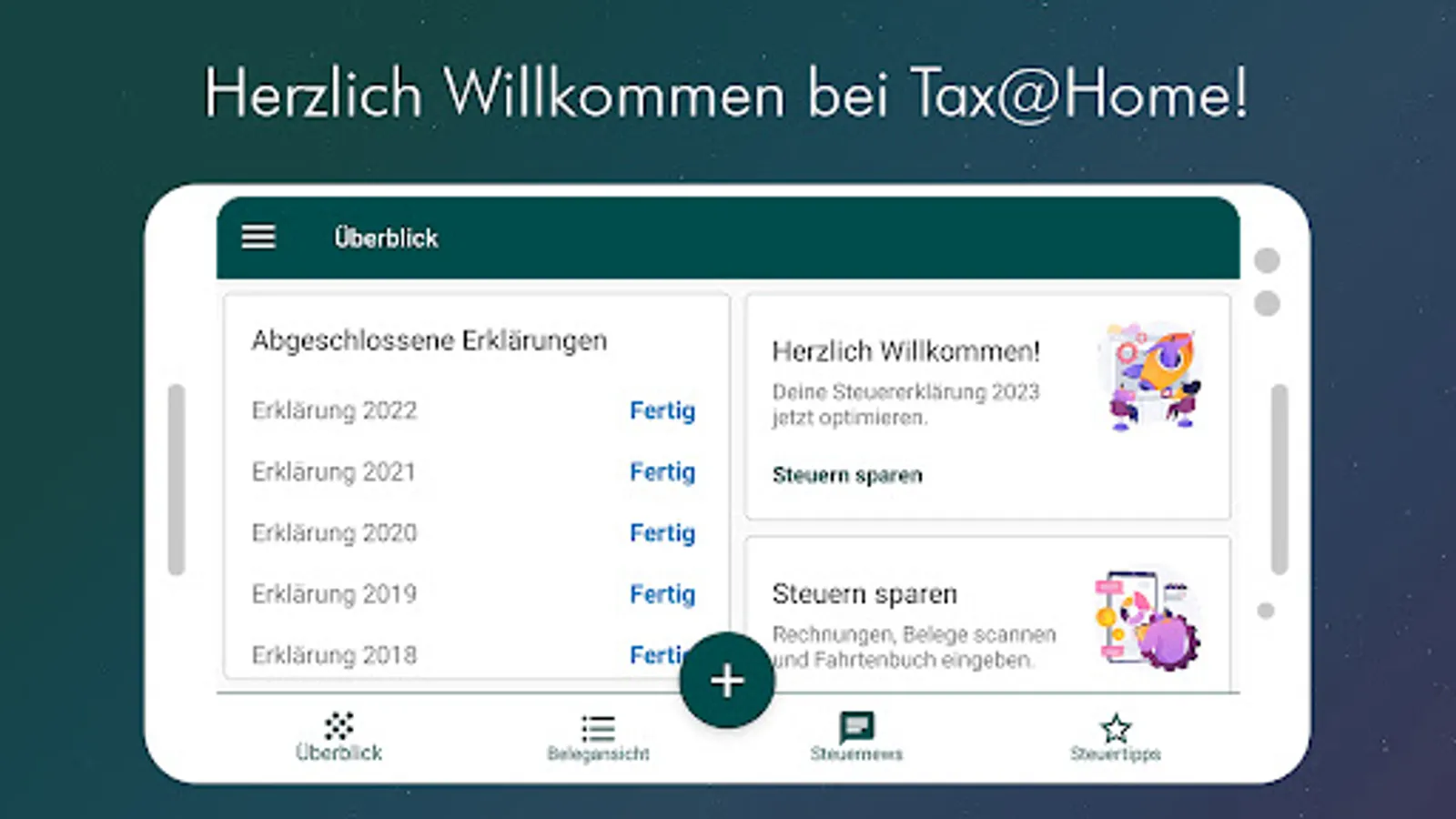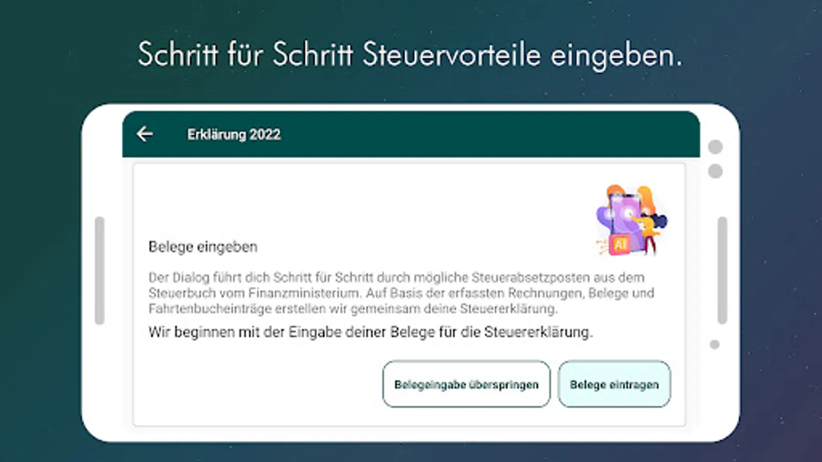 👋 With the Tax return dialog we query your expenses and automatically create your tax return documents. Brilliantly simple!