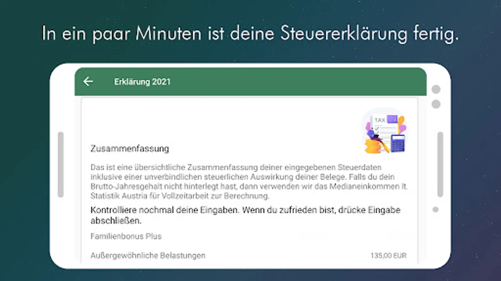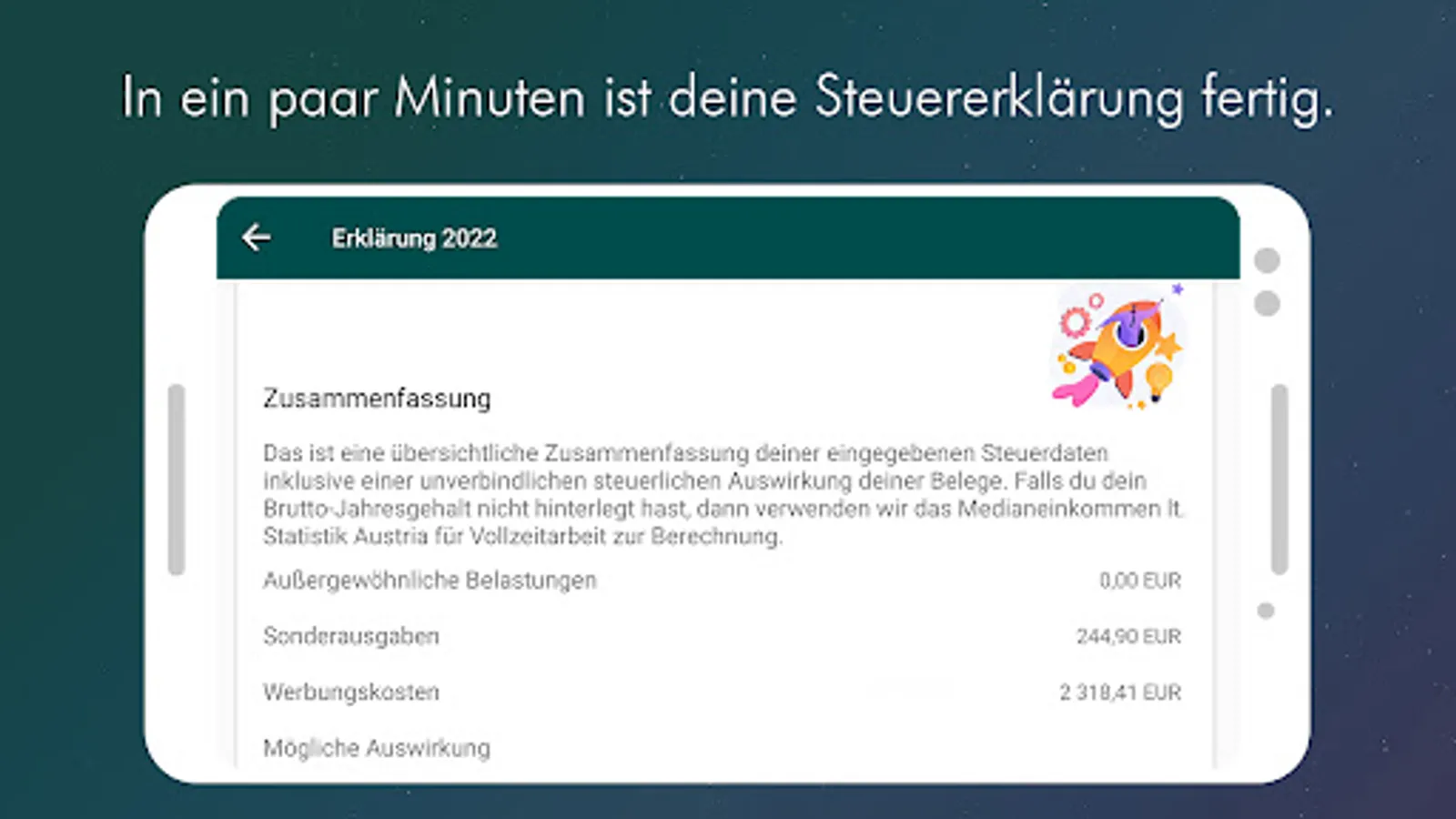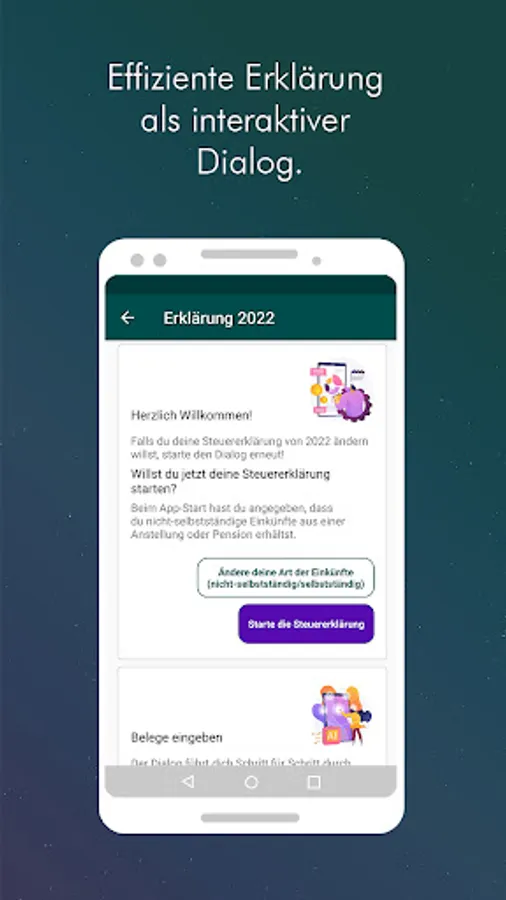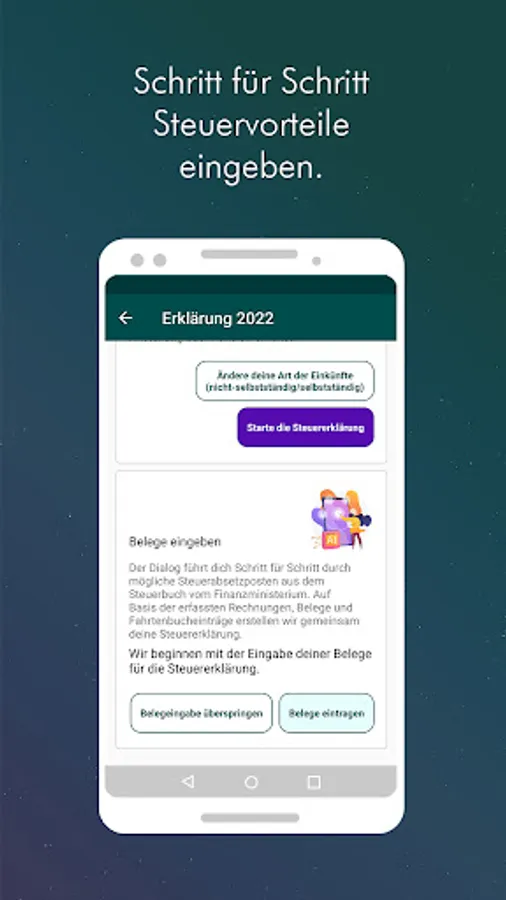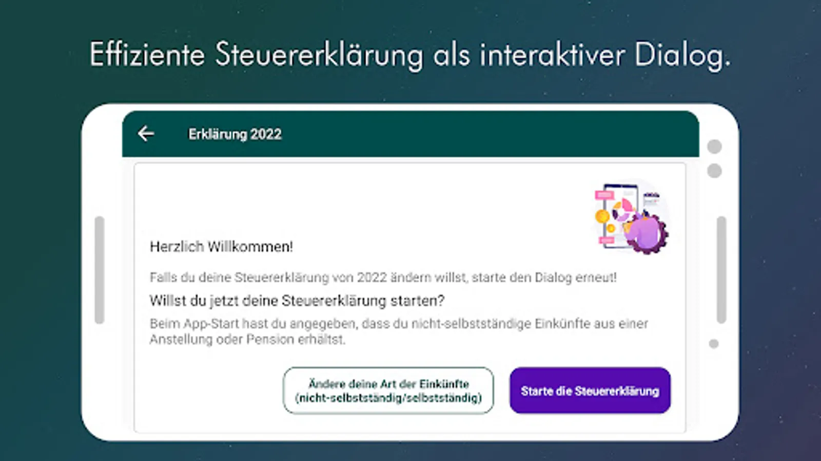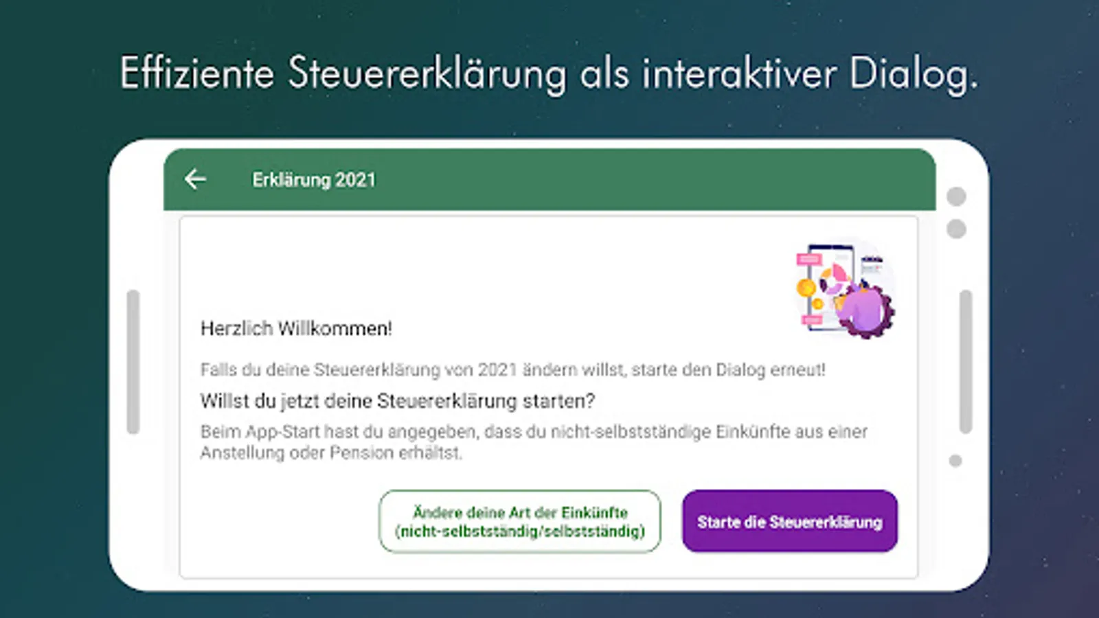 👋 With the Tax return dialog we query your expenses and automatically create your tax return documents. Brilliantly simple!