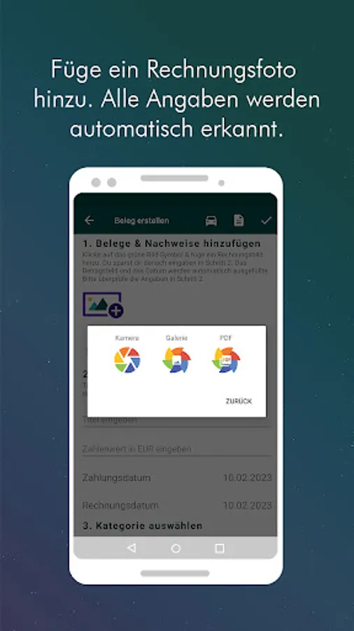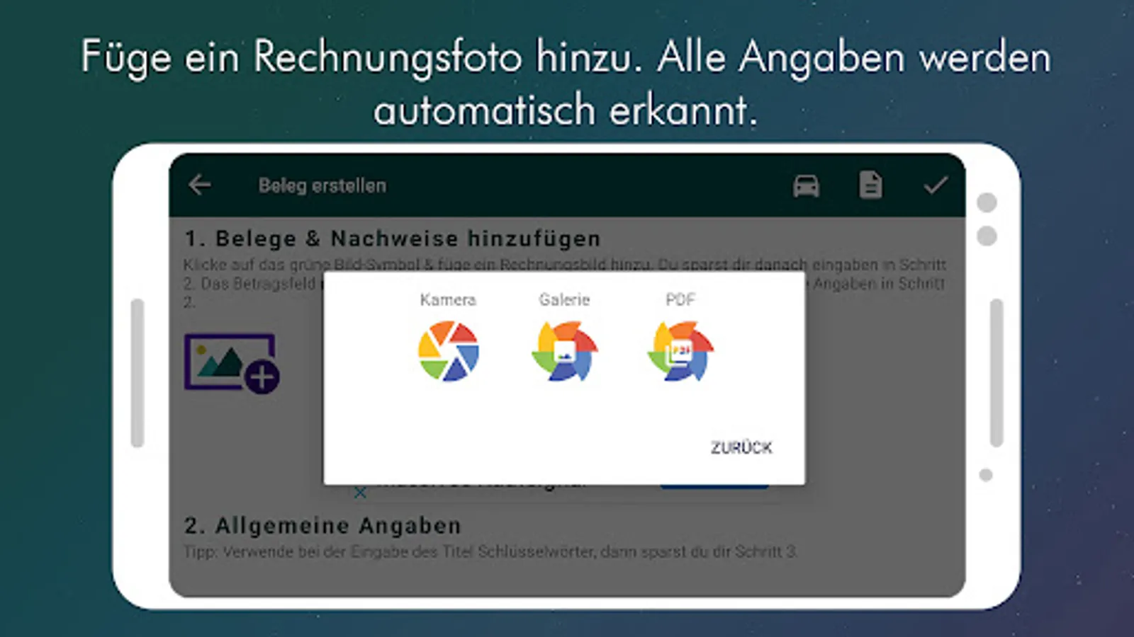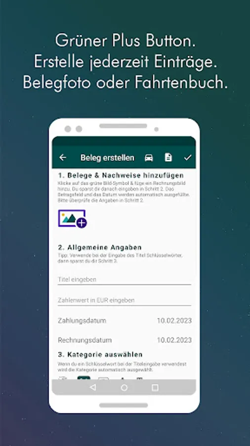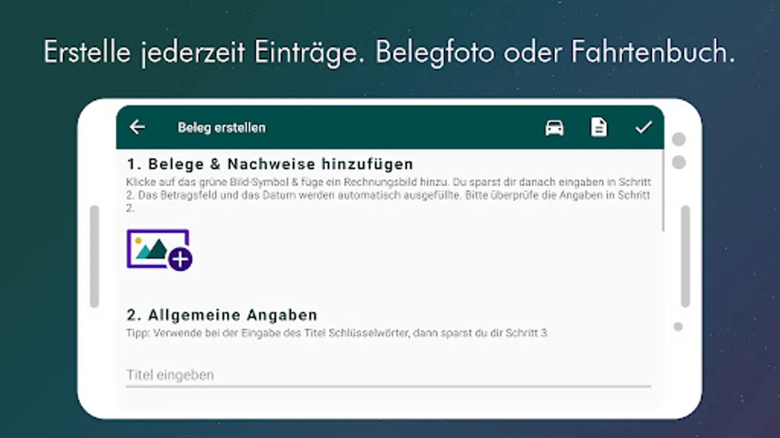 🎉 Store digitally instead of paper chaos, paperwork & forgetting. You conveniently collect the receipts with your smartphone. We assume that receipts are automatically assigned to tax categories & depreciation is taken into account. You have collected everything in the app.
