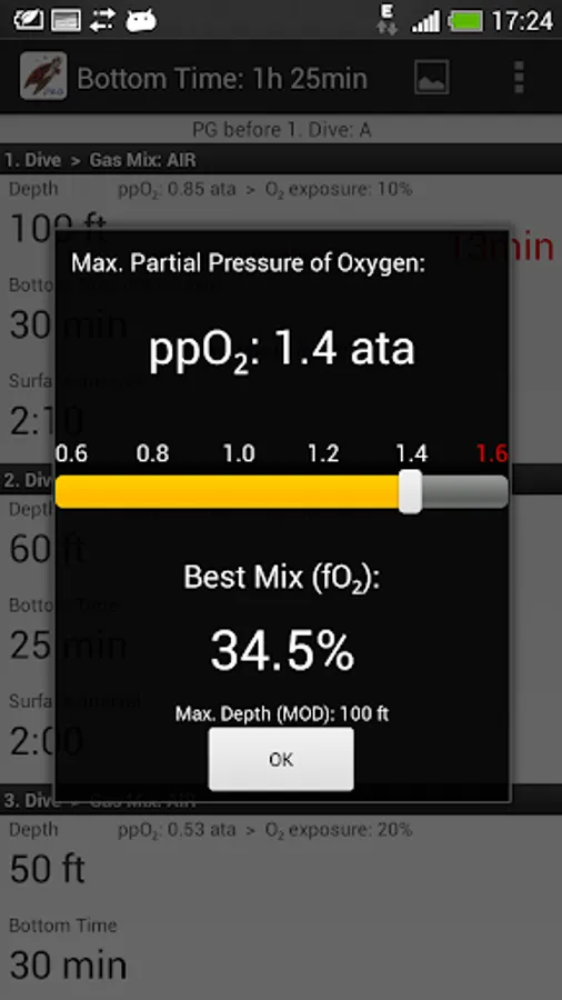 > BestMix (fO₂) calculator: enter depth and max. ppO₂ and get the Nitroxmix.