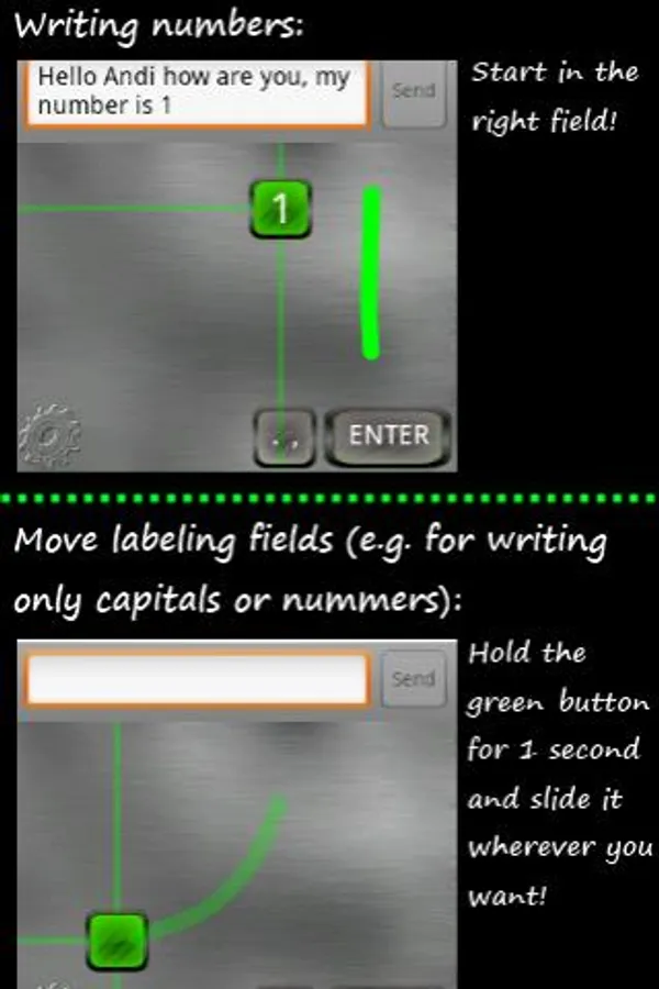 > For writing only in upper (or lower) case or writing only numbers, its possibly to move the labeling fields.