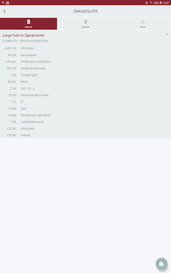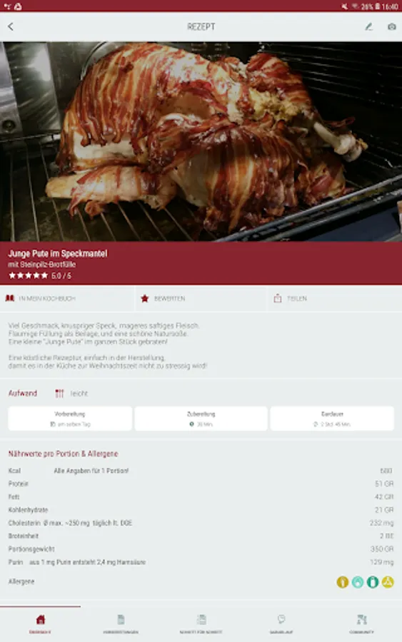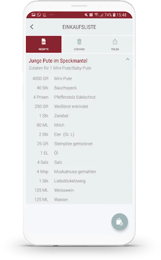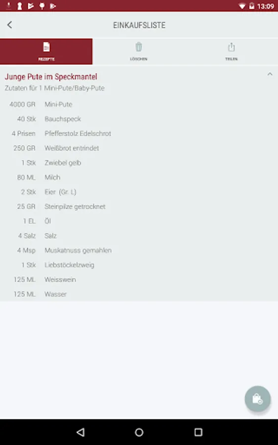 • Save favorite recipes in "Your" cookbook and create a shopping list for a recipe