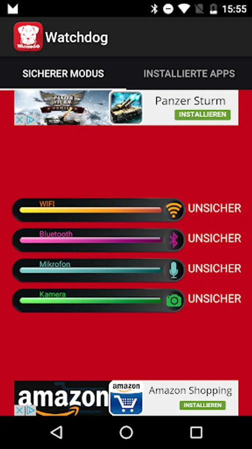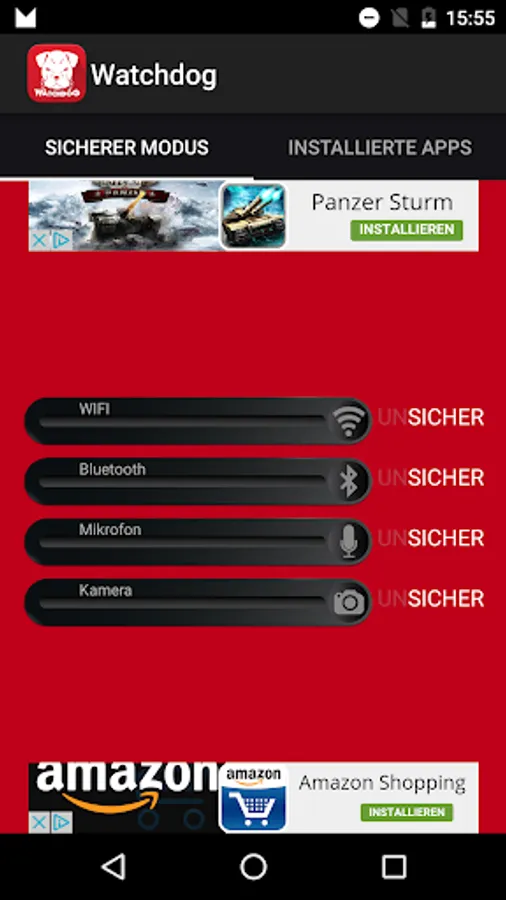Turn your microphone off during important conversations. Use „Watchdog“ to get your privacy back!! Have you ever wondered what all your Apps query as in the background? With Watchdog you can refuse permissions of stealth apps, but also delete it entirely.