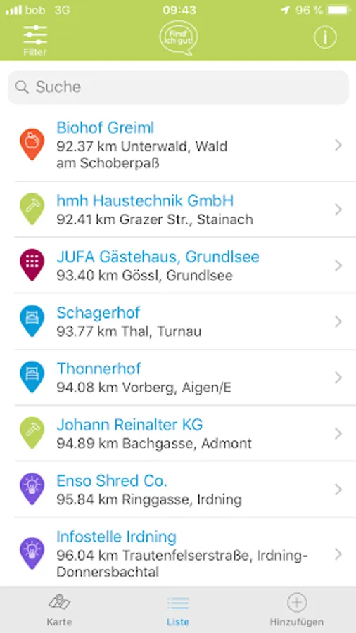 The Climate Protection Coordinator of the Province of Styria A15 offers the app "Find me well" in cooperation with Klimabündnis Steiermark and Bio Ernte Steiermark free of charge. With this app you can easily and quickly find sustainable providers in Styria. We welcome new entries from companies and release them after scrupulous review.