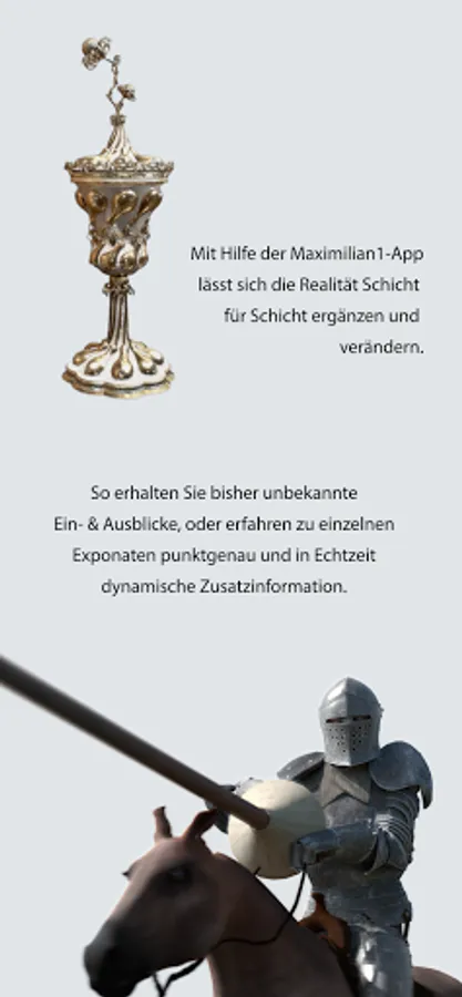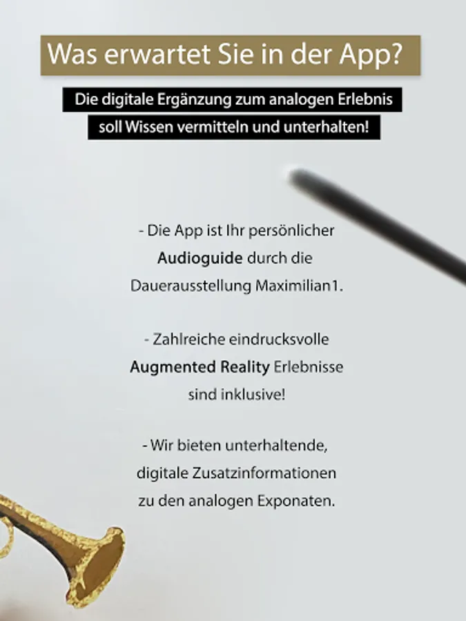 With the unique Maximilian1 app, which was commissioned by the Burghauptmannschaft Österreich to accompany the permanent exhibition “Maximilian1” in the Hofburg Innsbruck, you receive exciting background information precisely and in real time, dynamic additional information in freely selectable levels of detail.