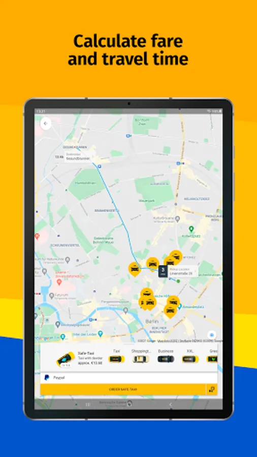 Order a taxi from your application Taxi-App in 160 European cities/ 10 countries, calculate the fees and pay cashless. Numerous order options are available.