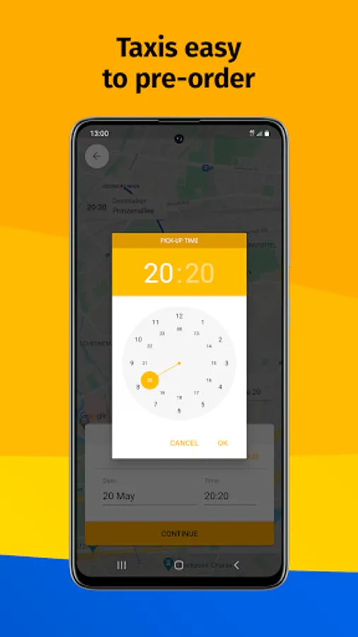 Simply order your Taxi at a later desired time. When the order is confirmed, the estimated time until the Taxi arrives, the vehicle model and the vehicle's license plate number are displayed.