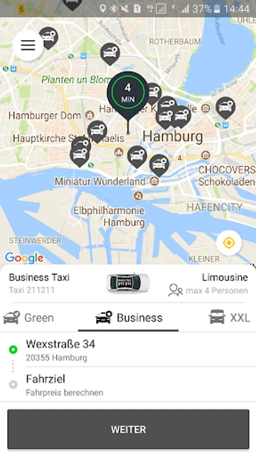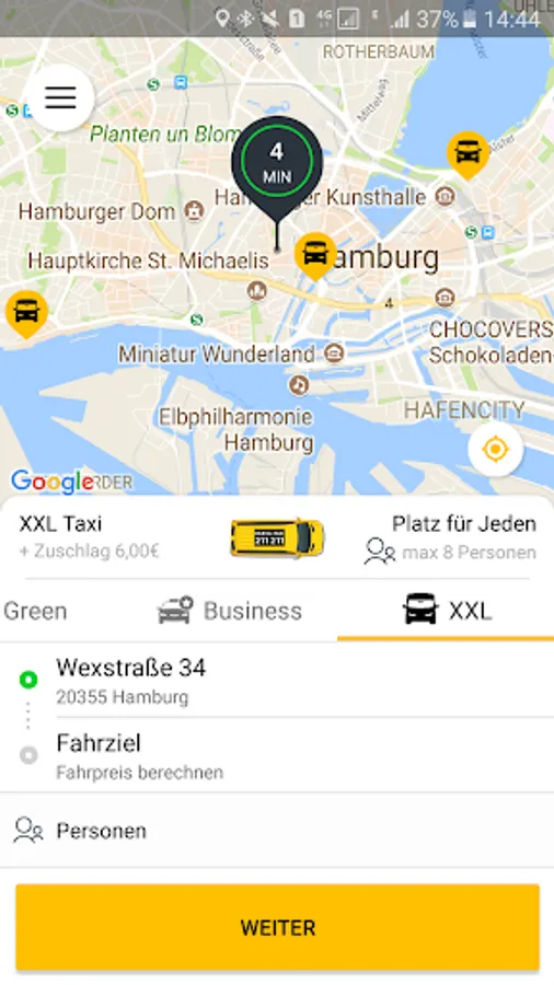 The Hansa-Taxi App for Hamburg and other German and European cities – more than 100 cities in 13 countries.