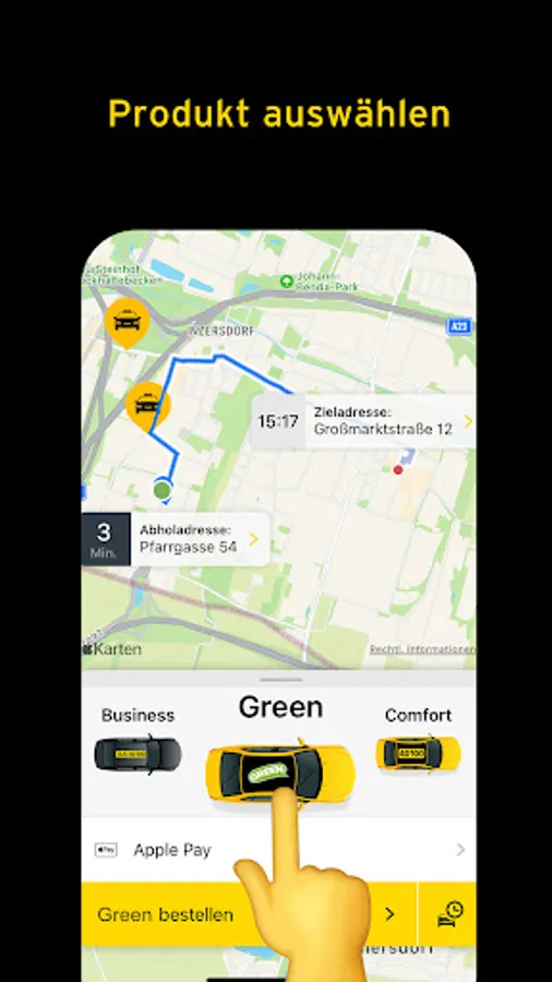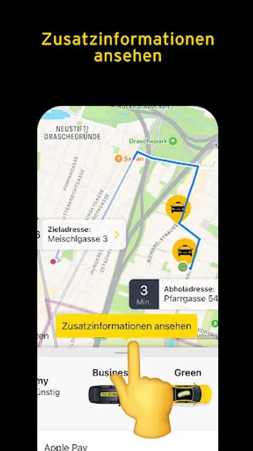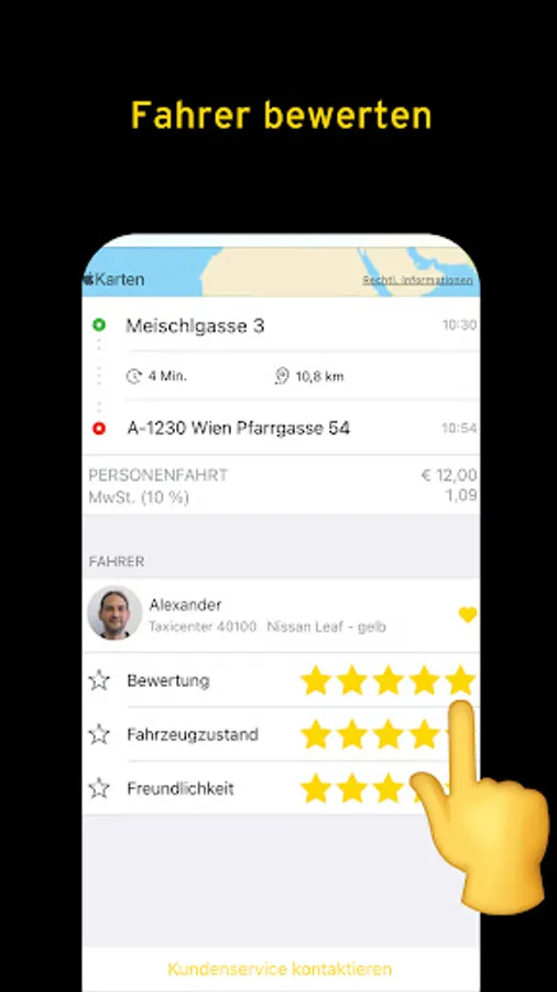 • After registering for the in-app payment, you can easily insert your Taxi 40100 customer card and pay the fare with the card of your choice - payment via Paypal & Google Pay is now also possible.