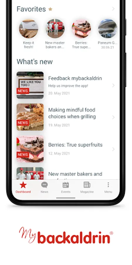 Download the mybackaldrin app and stay up to date with the most important news, events or job offers in the world of backaldrin.