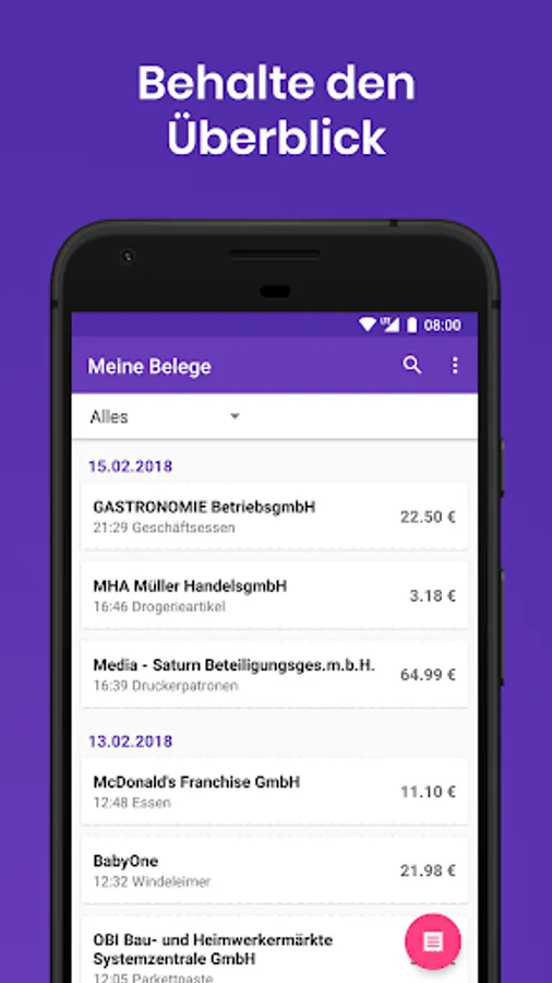 With document scanner you can transfer your bills easily and quickly capture for accounting! The app scans the mandatory present in Austria QR or barcode on invoices and automatically divides the amounts in their individual tax brackets. The invoice data is digitized and archived and can be used for accounting as an Excel or CSV file thus without having to be captured laboriously by hand. So you always keep track of your spending and save precious time!