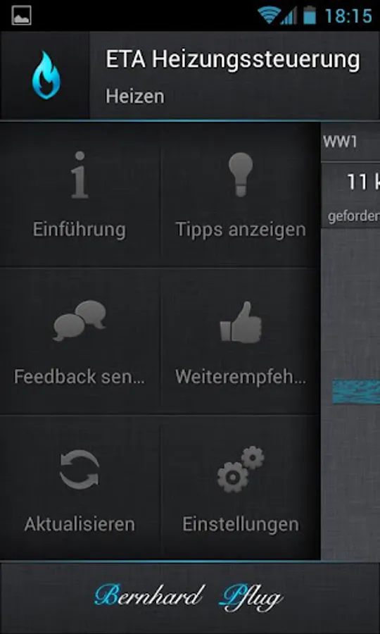 Controlling your connected ETA heating has never been that easy. With just a few clicks you switch between normal and reduced temperature of your heating circuits, control your hot water and check your buffer state.