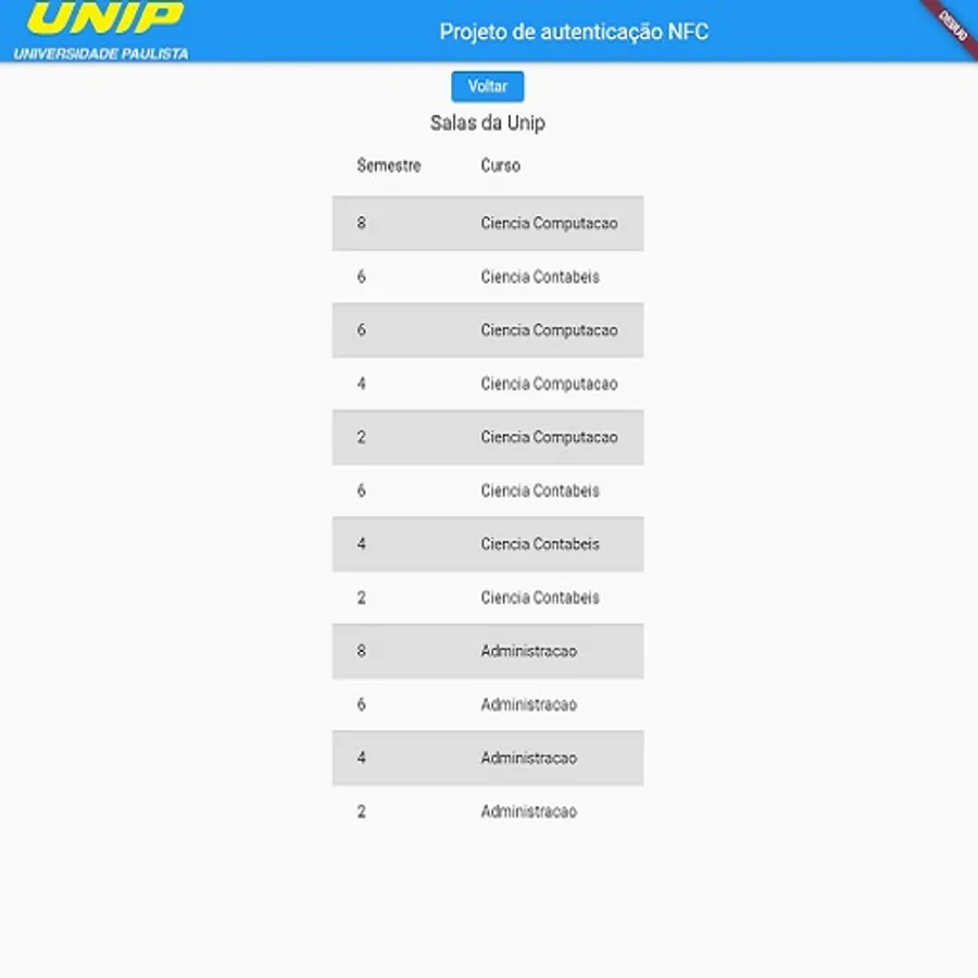 Projeto autenticação NFC Unip Screenshots