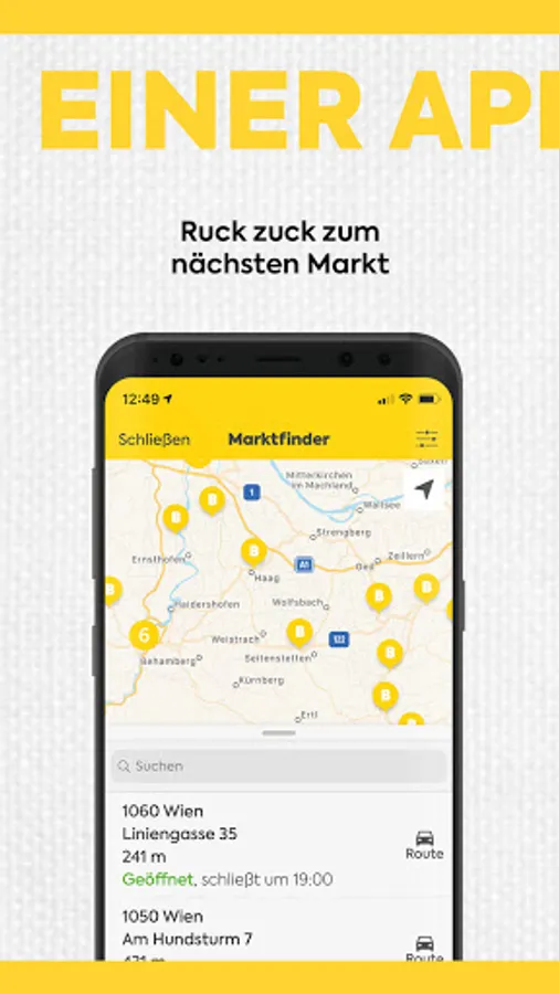 The next BILLA store is sure to be very close! With our market finder, thanks to GPS, all markets in the vicinity are displayed. The address, telephone number and current opening times of each market can also be found here. There is also information on whether there are parking spaces and electric charging stations.