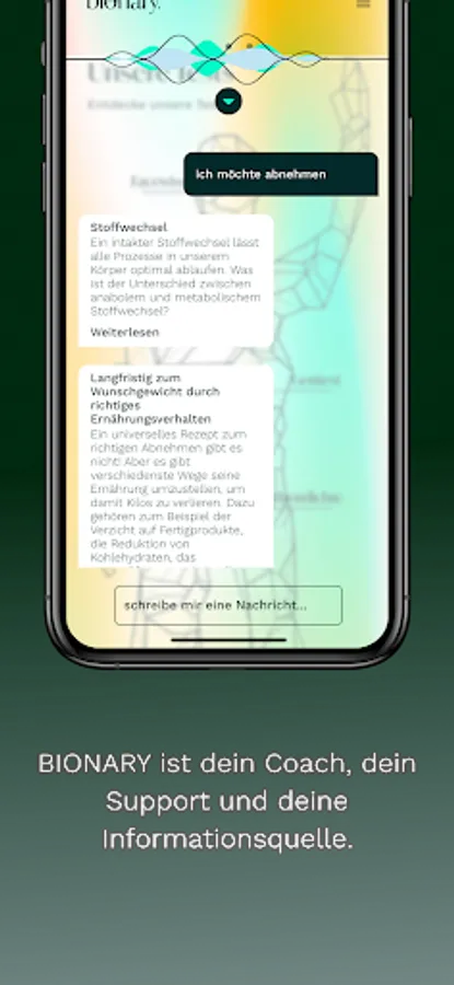 Take your lifestyle into your own hands. BIONARY is your coach, your support and your source of information when your energy and well-being are important to you. Everything from a single source - everything in one hand: as an app on your smartphone.