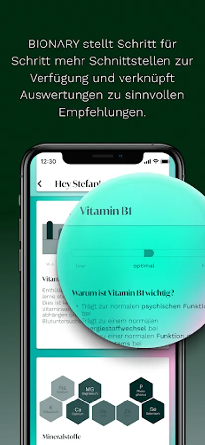 Too many apps, too much data, no links - we all know this too: BIONARY provides more interfaces step by step and links evaluations to meaningful recommendations. This is a simple and uncomplicated way of gaining your own personal benefit from existing data sets for the most important things in your life: your energy and well-being.
