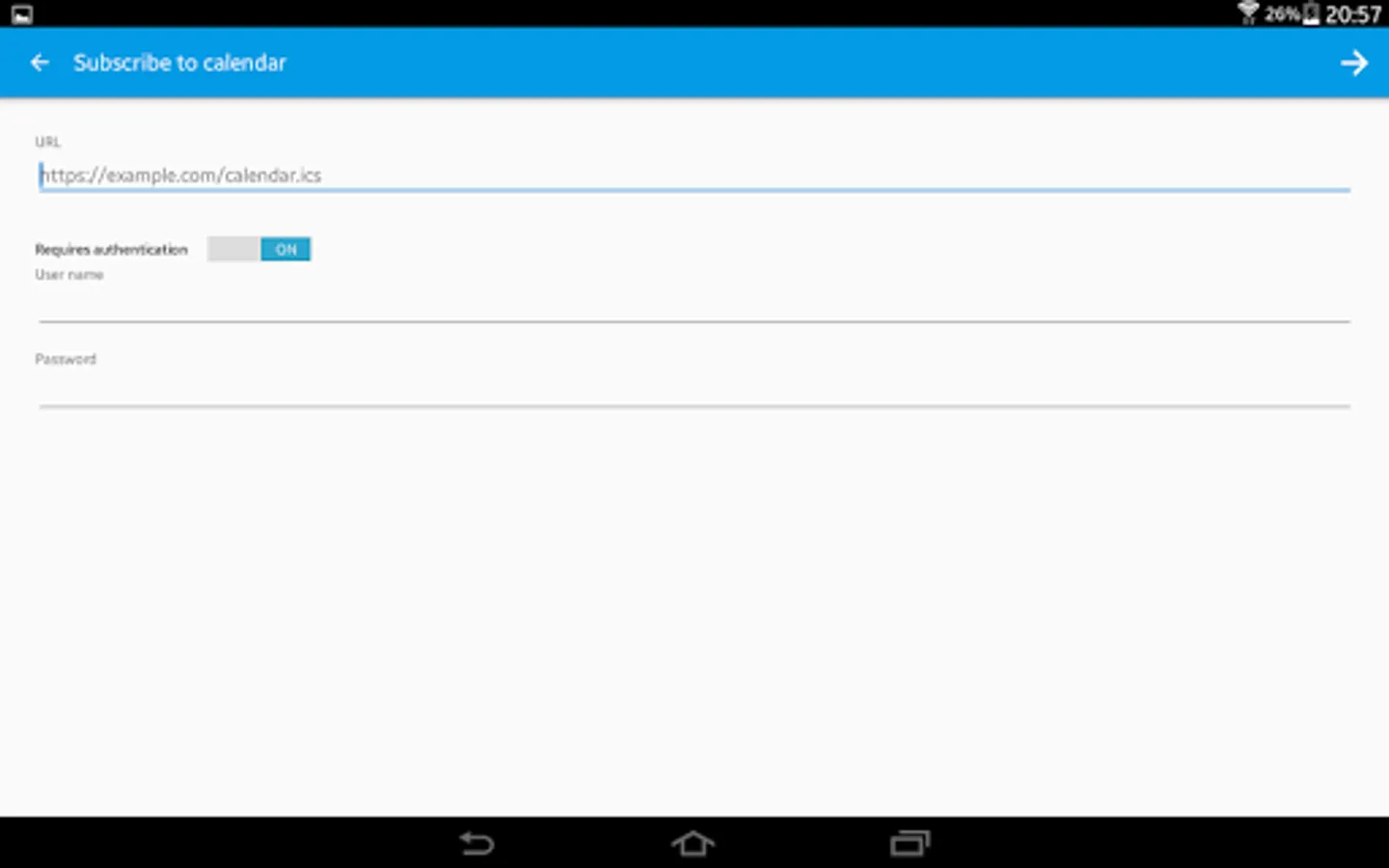 ICSx⁵ allows you to add/subscribe and manage external (Webcal) iCalendar/.ics files on your Android device. One-way sync to your device.