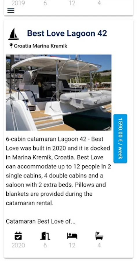 • You can sort and filter your search results according to numerous criteria like type of boat, number of cabins, charter company, extra equipment (e.g. WiFi, TV, grill etc.), that is important for you.