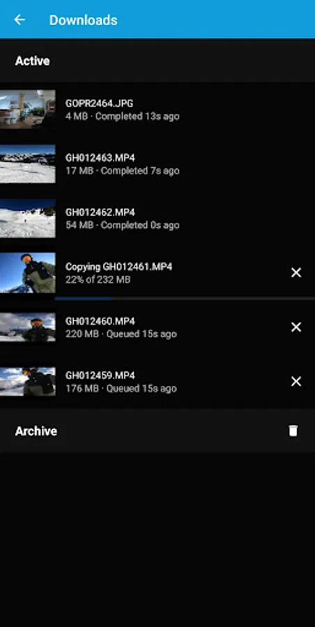 Fast background downloading with a download queue to make it even easier to control. You can download Files directly to you SD-Card, so you dont have to move them 3 times before they are where they should be. The current download status of each file is also displayed when browsing the media on you camera so you always know what files you already backed up!