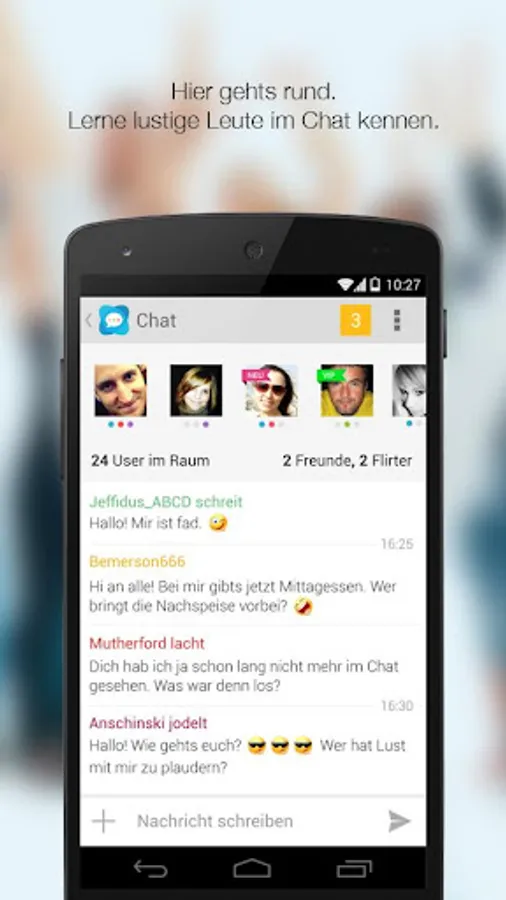 In many chatrooms talked from morning to night and drilled Smalltalk. If we find someone sympathetic, and you start easily a new private chat. Some can be found also prefer and look forward to mail from new faces. The main thing: fun, entertainment and never bored!