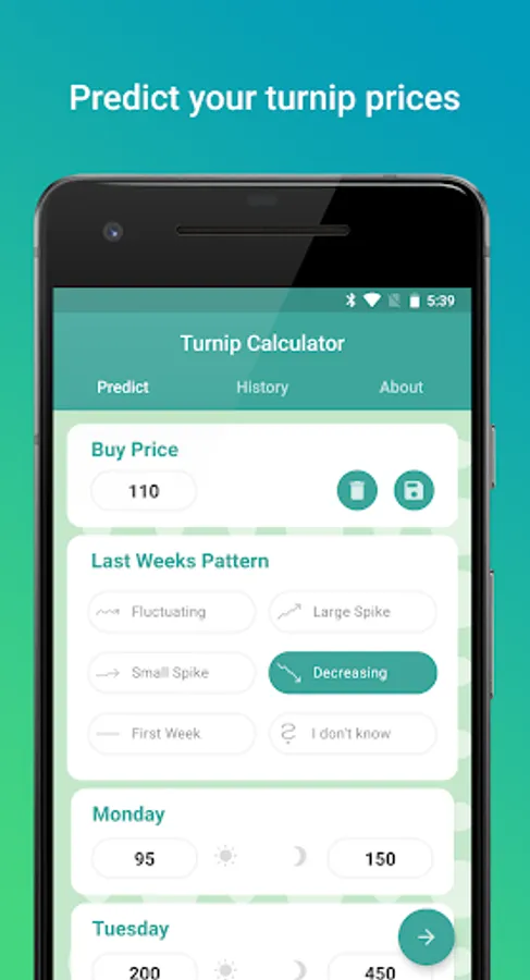 Allows you to predict the turnip prices for Animal Crossing New Horizon over the course of the week.