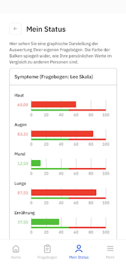 With the help of the app, the subjective health status of bone marrow transplanted adult patients is recorded. For this purpose, patients can fill out internationally validated questionnaires on specific symptoms, treatment side effects and general aspects of quality of life at predefined times.