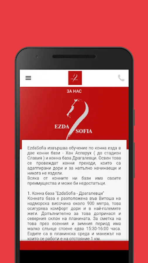 EzdaSofia provides training in horse riding in horse two bases - Han Asparuh (Slavia stadium) and horse riding Dragalevci. Furthermore held horseback adapted even for complete beginners and never rode.