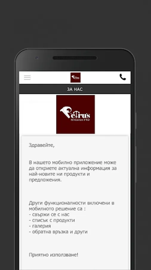 Трудно можем да се сетим за по-подходяща идея от тази талантлив и перспективен готвач да отвори собствен ресторант. И то не просто място, където да хапнеш, а просторно заведение с отделни концептуални зали за една чудесна кулинарна еклектика. Преди десетина години на Петър Янков, тогава главен готвач на луксозен ресторант в Пловдив, му хрумва идеята да направи собствено заведение, където да остави въображението и кулинарния си талант да се вихрят свободно. Да предлага на гостите неговата представа за добра кухня. Отваря един празен тефтер и записва името на бъдещото си място - Petru's. Хубавите и изпипани начинания се случват бавно и с обмисляне. В продължение на години Петър развива уменията си, като трупа опит и знания от обучения и практики в чужбина, а записките в тефтера набъбват с идеи и впечатления. И така допреди година-две, когато решава, че моментът е назрял и започва да се оглежда за място. Случайно попада на сградата на бул. Свети Наум 48 и я познава веднага. С двата си етажа, широкия паркинг, детския кът, терасите и простора си, тя му позволява да даде пълен размах на мечтите си. На първия етаж те посреща закрита градина, от която любезнаият персонал те кани любезно да разгледаш залите и да избереш местенце по твой вкус. Вляво от входа е просторната музикална зала. Дискретно монтираните лампи осветяват едновременно меко и обилно помещение с удобни дървени маси и столове. В дъното са подредени електронно пиано, китара и микрофони, чакащи петъчните и съботните вечери. Самият собственик идва от музикално семейство и е запален меломан, затова озвучаването е важен елемент в Petru's. По стените пък са окачени рамкирани портрети на големите в рока и блуса, като в унисон са и песните, които звучат от колоните. Качвайки се на втория етаж, попадаш в минималистично и стилно подредената суши зала. Да, суши можеш да поръчаш навсякъде в Petru's, но тук е мястото да му се насладиш в подходящо обкръжение. Тоновете са меки и обрани, а големият аквариум допринася за спокойствието на гостите. В съседство се намира VIP залата с една единствена маса, обкръжена от 12 тежки стола. Мястото е идеално за бизнес вечеря или за важни разговори по делови или лични въпроси на спокойствие, откъснати от останалите клиенти и персонала. Пак на втория етаж е и show-cooking стаята. Готвачът стои зад голяма стъклена рамка и приготвя храната пред очите на гостите. За тях, в това крило на Petru's, има и шоу-колички, на които имат възможност и сами да приготвят предпочитаното ястие. Звучи като чудесна идея да въртиш телешките пържоли върху базалтови камъни, които се нагорещяват до 400 градуса, а после с компанията да обсъждате достойнствата на собствените ти умения. Разбира се, можеш да разчиташ на екип от отлични готвачи, които ще сготвят твоя избор от менюто. Самото то включва обикновени продукти, но приготвени по необикновен начин. Представи си телешки език, направен не по традиционна рецепта, ами поднесен с панчета от Италия, препечен хрупкав пармезан и няколко вида салата. Звучи страхотно, нали? Продуктите се доставят от малки ферми, залагащи на качество и екологична чистота, а правилото, че изисканата и питателна кухня е скъпа, тук е напълно забравено. При виното отново имаш внимателна селекция от 130 етикета, като половината от тях идват от малки и независими български изби. Предлагат и загла
