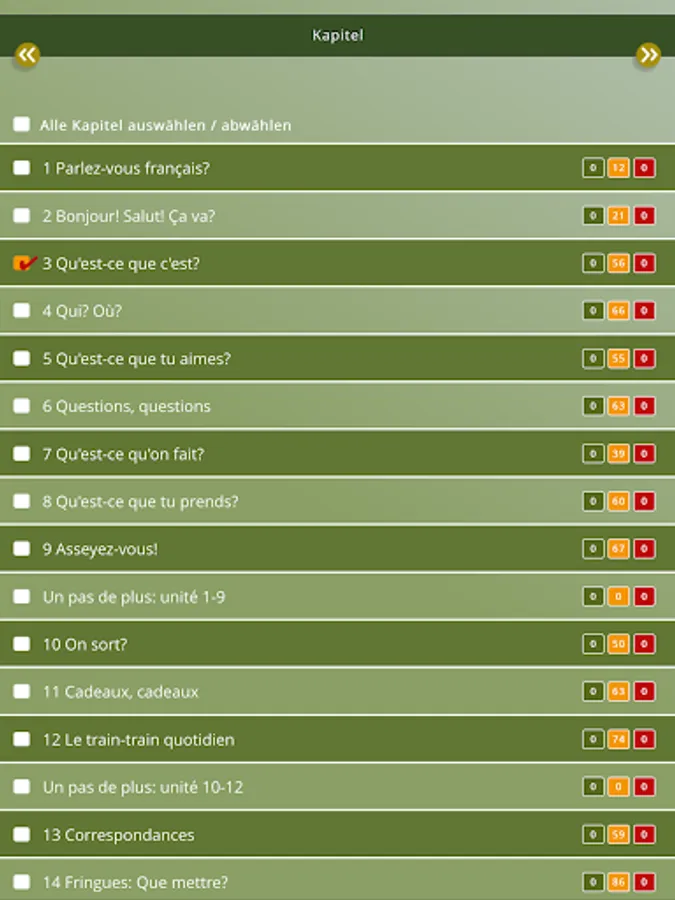 With the VocabApp you can easily and comfortably vocabulary to "Bien fait! learn modulaire 2 ". You can select chapter by chapter, read out the words and example sentences, playfully practice them and have them tested.