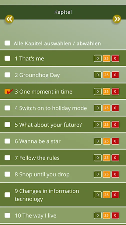 With the VocabApp you can easily and conveniently "one best shots" train and expand your basic vocabulary targeted and consolidate selected learning vocabulary. You can choose to be read to you the words, practice playful and can prove you chapter by chapter.