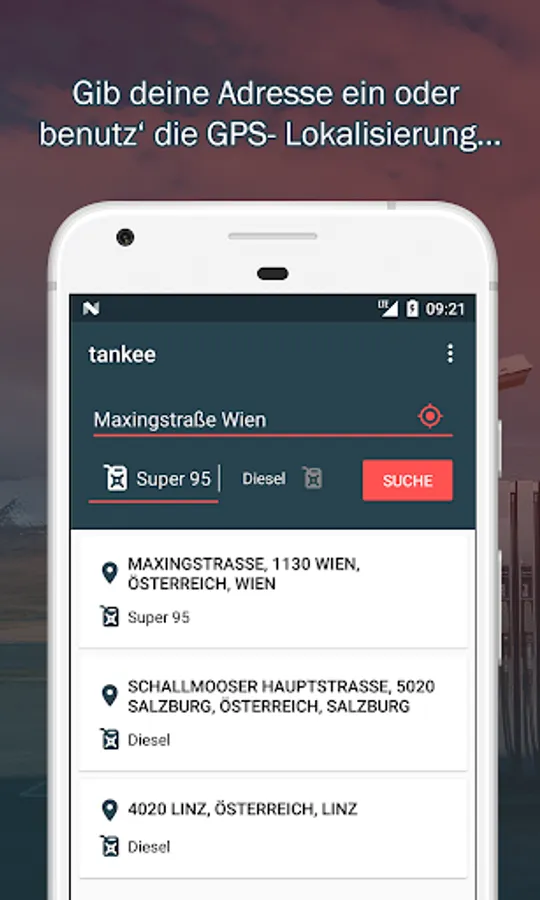 With tankee you can easily query the 5 cheapest gas station prices in your area and all over Austria and Germany.